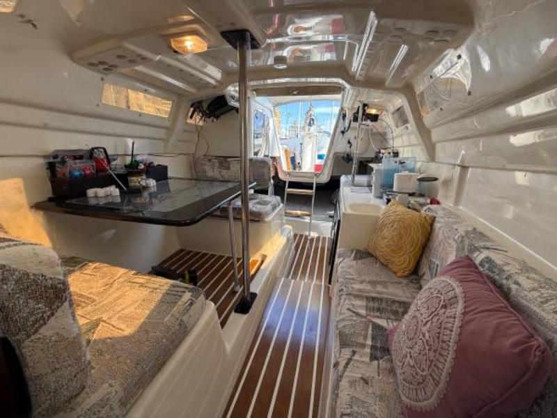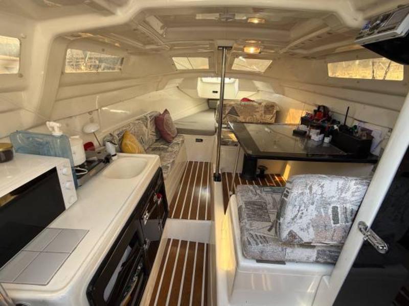 Sleeps 4 (small V-birth and King size aft bed), standing room 6' , 40HP Yamaha Outboard Motor, 36V 112lb thrust electric motor 4 deep cycle 100ah marine batteries. Mainsail, Self Fuhrling Genoa, spinnaker, all in almost new condition, sail covers, cockpit cushions, GPS enabled VHF Marine Radio, dockside battery charger, life jackets.