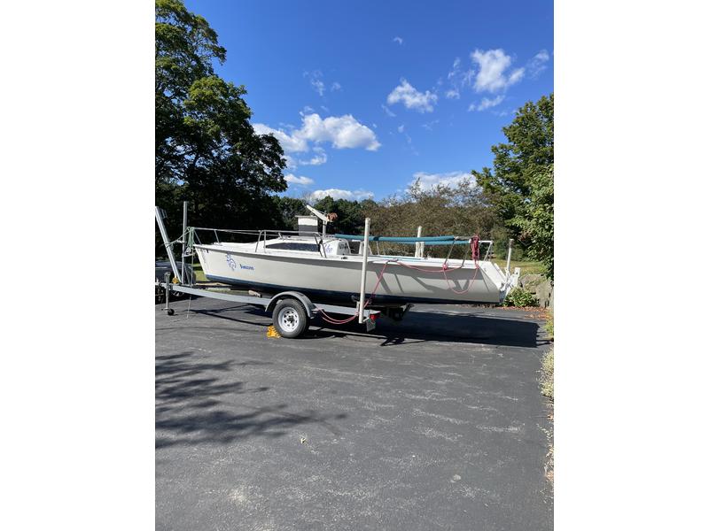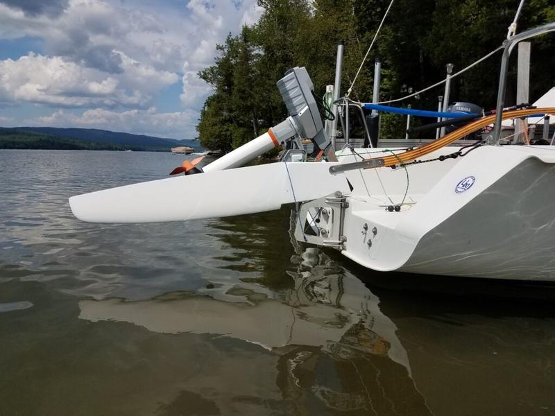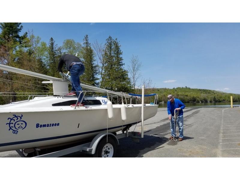 I purchased this boat in August 2024. At that time, it had not been used very much which led to its sale. Since I have owned it, I used it only a handful of times regretfully. My sailing season in New Hampshire is short, typically 4 to 6 weeks of vacation sailing per year. The racing crew size is 3, and it can accommodate 4 for day sailing. The asymmetrical spinnaker allows sailing with the spinnaker single handed. The electric motor with twist handle reverse and very low speed capability is far superior to a small gasoline outboard for tight maneuvering in heavy and light air.