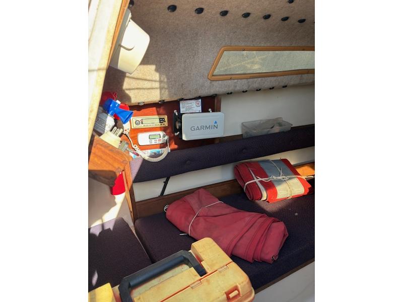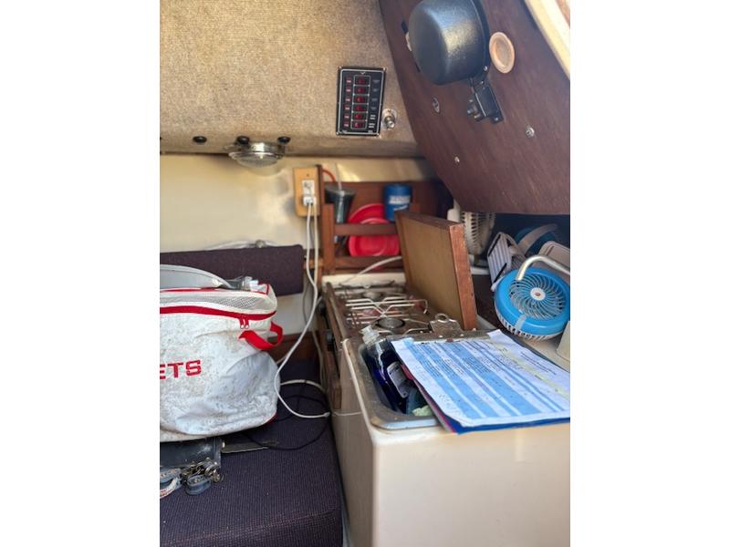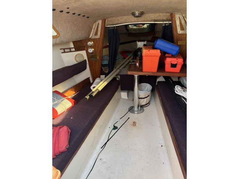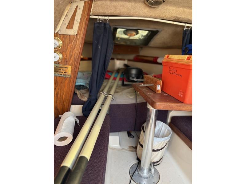-Shoal draft keel with fiberglass centerboard. Internal lead ballast 850lbs Board up 1'11 down 5'4 -Roller Furling Genoa, -Dutchman Main -2 additional sails, Main and Jib -2010 8 HP Yamaha 4 stroke -Two switchable batteries -Shore Power -2 extended oars and mounts for sculling/rowing -7 foot extended cockpit -Tandem Aluminum Trailer, new bunks and roller keel bed. New bearings and tires. - sleeps 4, mounted cabin table, ice chest step down mount |