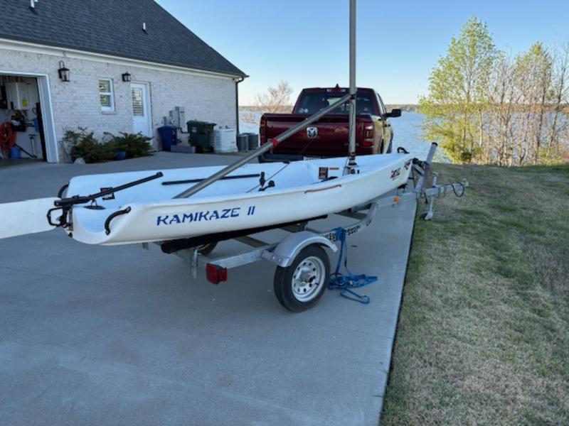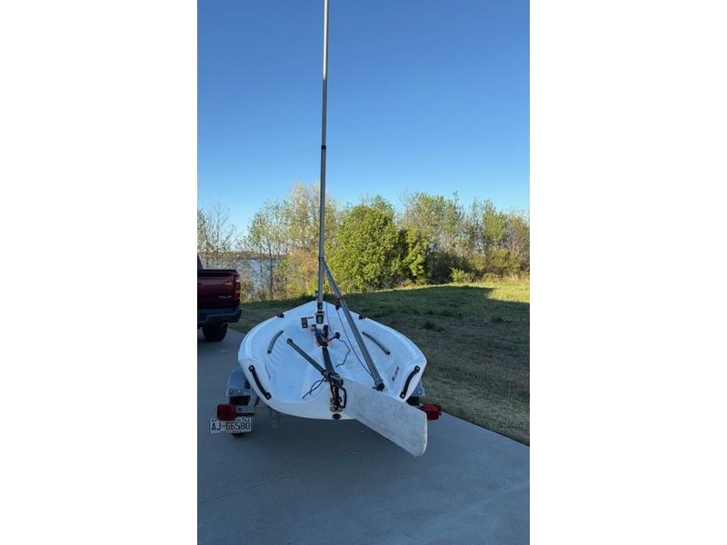 Very good condition with trailer. Two mainsails are provided, the mylar for racing (like new condition) and the Dacron for normal sailing. The boat can be upgraded to the RaceX version by purchasing the spinnaker kit. All the parts are present and the trailer is good to travel anywhere. Covers for the boat, mast, centerboard and rudder are included.
