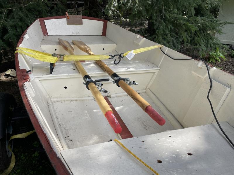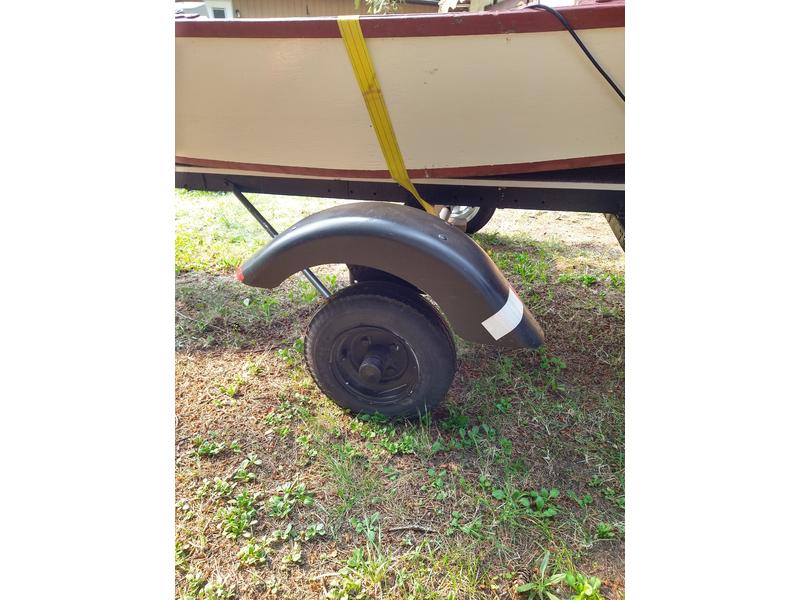 Nice little wooden rowboat on a trailer. Boat is 12.5 feet long and approximately 4 wide. The trailer does not have a title but tows very nicely. Also included is a little electric motor with battery and waterproof case that worked really well with it. The electric motor and battery were bought new and used only once for approximately one hour. Very sweet little homemade boat built by a man in PA, Asking $1500 for all.