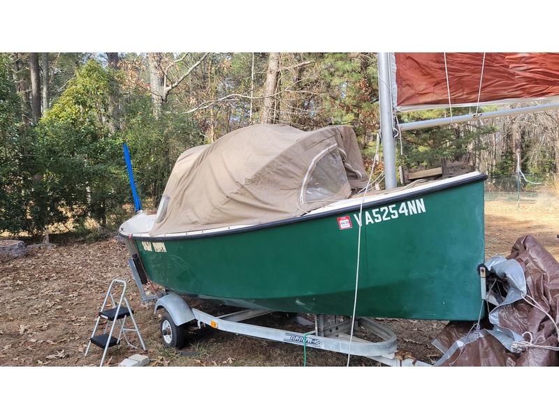 I have a very nice 1983 Marsh Hen, she is complete. She is a later model, hull #36 and gaff rigged. Gel coat looks nearly new, interior gelcoat also looks new. Has dodger/tent, Bimini and complete set of cushions. Just purchased all new lines for everything. Bought all new bearing blocks for gaff, and mainsheet. All new hinges for all the compartment and storage lockers. New roller blocks and lines for reefing. New 100a lithium battery and charger. 47lb thrust trolling motor is older but works fine. She is on a tilt trailer. |