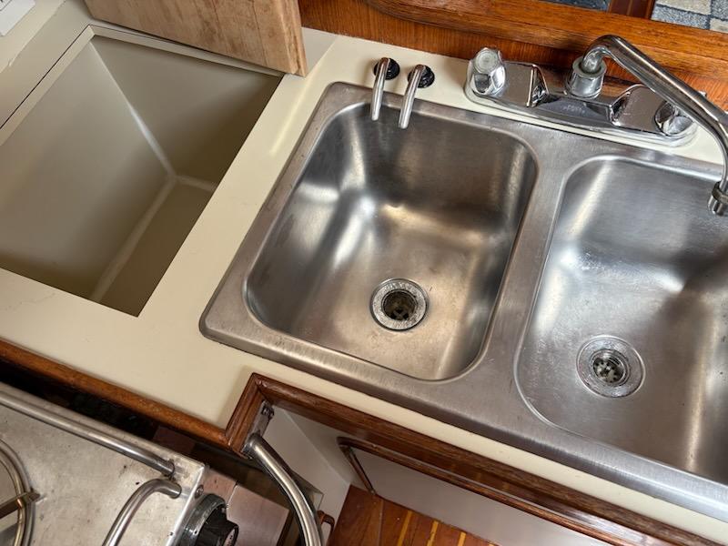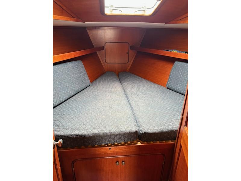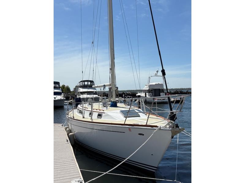 Main, jib & spinaker, bimini, Raytheon autopilot, knot meter, depth sounder, electric head, two burner propane stove, Polarmate frig, chart table, battery charger, Harken MK IV roller furler, VHF radio, 30 amp shorepower, winch handles, CQR anchor two 40 gallon fresh water tanks, 50 gallon diesel fuel tank, Orion electronic SOS beacon, life sling, cradle for winter storage, lazyjacks purchased in 2024 but not yet installed. |