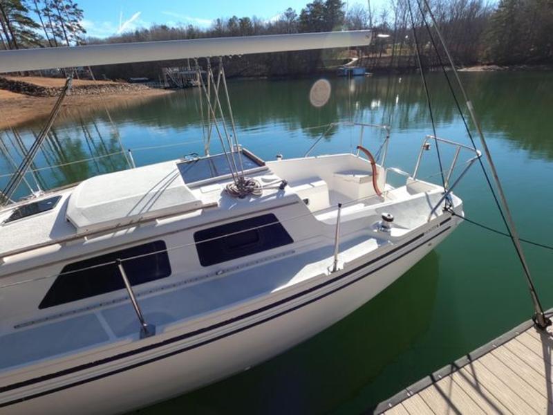 Key Advantages Design: Known for a spacious, open interior and a "sugar scoop" transom with a swim ladder, making it comfortable for families. Sailing: Features a fractional rig, which is easy to handle. It performs well in 10-12 knots. Interior: Features a, sometimes, surprising amount of room, with a double aft berth, a V-berth, and a salon that converts to more sleeping space. Construction: Features a wing keel, which provides a shallow draft, perfect for lakes or coastal cruising. General Description Boat is very clean inside and out V berth forward is open to main cabin Large aft berth is very spacious V berth and aft berth cushions are in great shape Standing headroom in main cabin and private head Galley with stove, sink and icebox Dining table with leaves seats 4 Spacious cockpit with walk through transom and swim platform/ladder Lifelines New Bimini Main and hanked-on Genoa in very good condition Suzuki 9.9HP outboard with Remote Throttle/Shift Tiller |