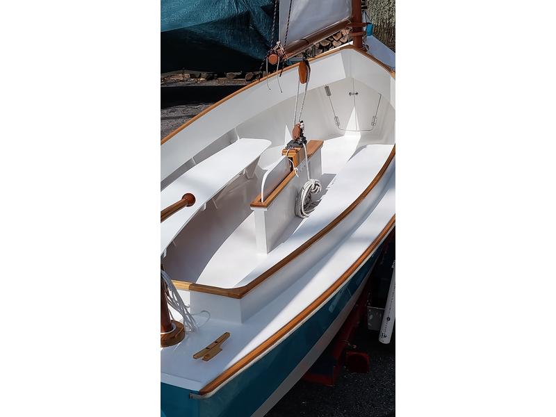 New boat built by a professional builder according to boat designer Karl Stambaugh's plans. It is a roomy boat perfect for families who want to enjoy a safe sailing experience! It has been profiled in the WoodenBoat publication "Forty-five Boats" as well as in WoodenBoat Magazine Issue 252 "Devlin's Boatbuilding".