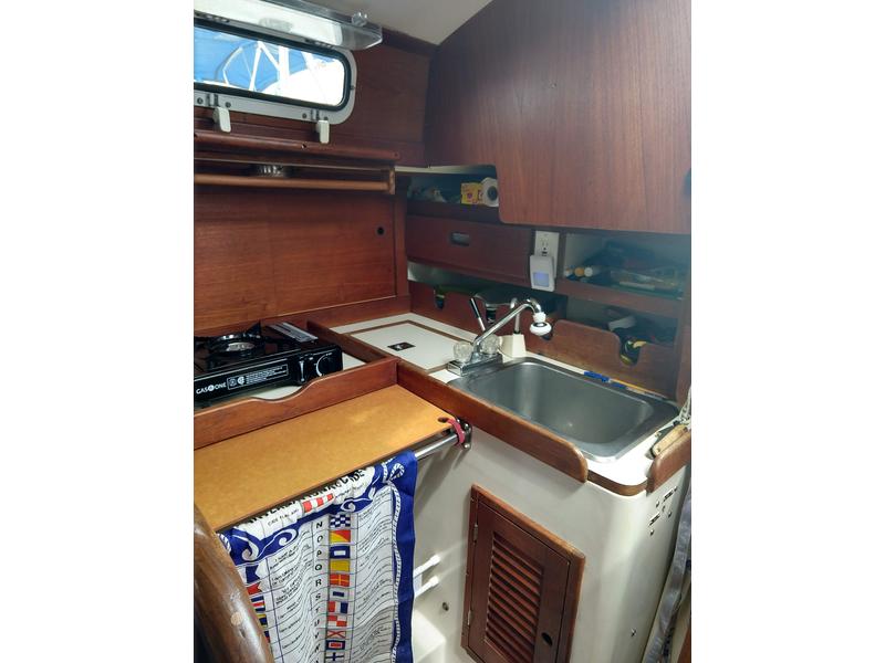 Accessories included in sale: 1 Plow anchor with chain and line 1 Danforth anchor Shorepower cable and back-up cable Spinnaker pole Raymarine chart navigation system Newer Horizon fixed mount VHF with DSI and ASI capability & remote handheld mic Horizon Amplified External Speaker Autopilot Leather steering wheel cover Solar charging system Water heater Folding propeller with dripless prop shaft seal Newer lifelines Furling system Custom winter cover 3 head sails, 1 mainsail, 2 spinnaker sails (light & heavy air) Custom Sea Cushion waterproof foam cockpit cushions Fenders Assorted lines (some never or rarely used) and docking pole Stern mountable grille Original owners manual Safety equipment: 2 Emergency strobe lights 2 high powered handheld emergency lights 2 throwable horseshoe life buoys 1 throwable bag with rope Jacklines Radar reflector Life jackets New boom brake preventer system Block and tackle systems for rescue or other use Miscellaneous cabin accessories/upgrades: Portable electric dehumidifier Custom v-berth mattress pad Updated electrical Updated plumbing Stereo system with interior and cockpit mounted speakers Galley accessories including butane portable burner Many more