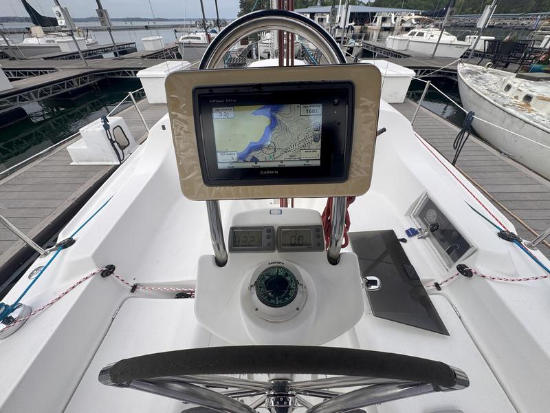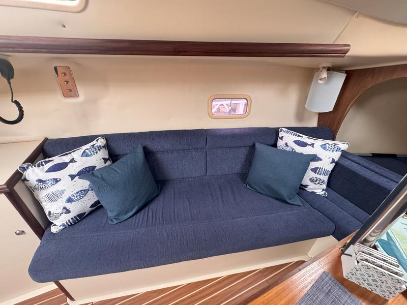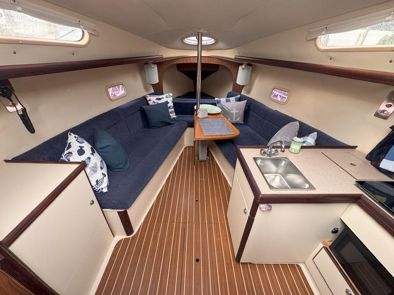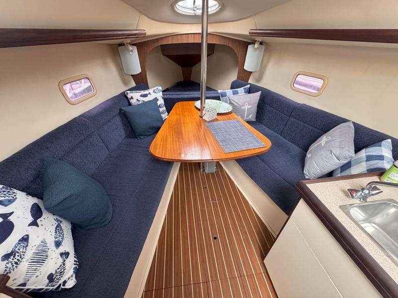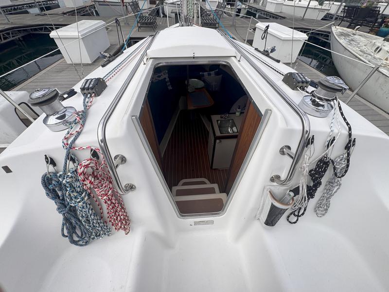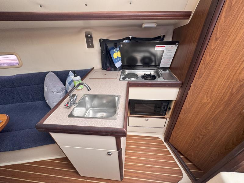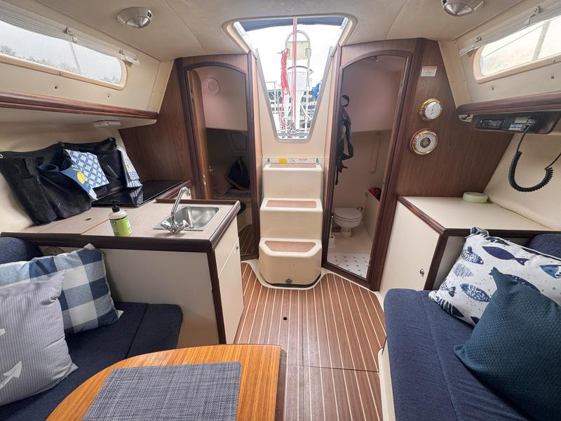Additional Description In-Mast Furling Self Tailing Winches at Helm for Jib Sheeting Mainsheet Traveler Marine Head w/Holding Tank & Macerator Pump Solid Boom Vang Bimini Top Spray Hood Spinnaker Gear Wing Keel Epoxy Barrier Coat Bottom Paint VHF Radio with DSC Raymarine Knot/Depth ST40 Raymarine Windmachine ST60 Raymarine Autopilot 4000 Accordian Window Shades FM-200 Engine Fire Extinguisher with Engine Shutdown High Water Bilge Alarm System and Additional Pump Additional Description Cockpit Storage Locker Integrated Wheel Console Includes: Wheel Steering System, Single Lever Engine Control, Wheel Brake, Lighted Compass, Instrument Pod & Stainless Steel Wheel Guard Walk-Through Transom w/Swim Platform Removable Helm Seat Telescoping Swim Ladder Manual Bilge Pump Additional Description Solid Hardwood Trim Insulated Hull Liner 6'2" Headroom Whisper/Composite Headliner Convertible V-Berth/Storage Area Deck Hatch Storage Cabinet (4) 12V Lighting Fixtures Fully Enclosed Head Compartment w/Portable MSD, Vanity, Opening Port & Hanging Bar Private Aft Cabin w/Double Berth, Hanging Locker, Opening Port, Opening Ventilation Hatch & 12V Lighting Gas Shock-Assisted Engine Access Additional Description Single Stainless Steel Sink Basin Laminate Counter Top Solid Teak Hardwood Trim Dishware w/Custom Hanging Storage Bag In-Counter Waste Bin Additional Description Emergency Tiller Carbon Monoxide Alarms Smoke Detectors Additional Description 12V DC Electrical System w/Battery Switch & Breaker Panel Navigation Light Package Manual Water Pump System Cabin Lighting Electric Automatic Bilge Pump 20 (75 Liters) Gallon Fresh Water Capacity 15 (57 Liters) Gallon Fuel Capacity Rigging Anodized B & R Fractional Rig Boom Vang Dual Jiffy Reefs System Internal Halyards Led to Cockpit Large Roach Main w/Battens & Flaking System Mainsail Cover 110% Jib w/Roller Furling System Mainsheet Purchase System (2) Cabin-Mounted #16 Rigging Winches Adjustable Jib Lead Tracks (2) Sets Triple Line Stoppers Deck/Hull Anchor Roller Anchor Well w/Space for Rode/Chain Balanced Spade Rudder Bronze Through-Hulls Fittings Below Waterline Single Lifeline w/Dual Gates Fiberglass Hull w/Structural Grid Reinforcement and NPG Blister-Resistant Gelcoat Integrated Swim Platform Reinforced Fiberglass Deck w/MaxGuard, UV-Inhibited Gelcoat & Molded-In Non-Skid Keel, Antimonious Lead Keel, Shoal Draft Sliding Companionway Hatch Stainless Steel Bow Pulpit, Stern Rail Seats, Lifeline Stanchions, and Handrails Through-Bolted Hull to Deck Joint with Wraparound PVC Rubrail |