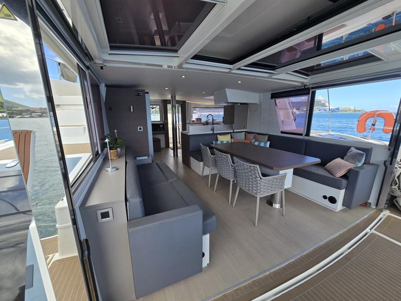 She delivers Balis signature seamless indoor-outdoor living, creating a large, open-plan social space rarely matched in this size range. Designed for serious cruising, she offers strong off-grid capability with watermaker, Onan 11kw generator, 900w of Solar, and air conditioning throughout the cabins.