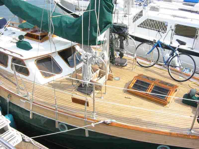 Hydraulic steering above and below deck; Teak deck; 55 ft deck-stepped aluminum mast; four yr old standing and running rigging; Schaefer Roller furling head sail; Removable second headstay; Slab-reefed main (4 years old); Cruising spinnaker (new); 140 Genoa (new); storm jib (seldom used); 110 jib; 95 jib; whisker pole working jib; Maxwell H3 electric windlass w 330 ft 5/16" chain w 600 ft 7/8" dbl braid anchor rode; 40# Bruce anchor; 2 45#CQR anchors; Fortress Anchor; 9 Ft Achilles dinghy; 8hp 2-stroke Yamaha; 6 person Revere liferaft; full sun awning; bimini; 200w PV panels with solarboost regulator; DuoGen wind/water generator; Hydrovane steering vane; Furuno 24 mile radar; sea anchor; Force 10 range/oven; Double sink in galley; Adler/Barber Refer/Freezer; AIS; McMurdo 406 EPIRB; Sea-breeze dive gear; 10 gal hot water tank; Autohelm ST3000 autopilot; Autohelm tridata depth sounder and speed log; Furuno NavNet III Radar/Chartplotter and heading sensor; Furuno GPS; Icom 802 MF/HF Transceiver; Icom 304 VHF Transceiver