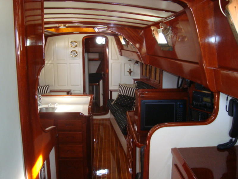Features a master stateroom, with double bed, numerous drawers and lockers, and its own private full head, with w/c, sink and shower. Going further forward is a U shaped fully equipped and a navigation station is to starboard.