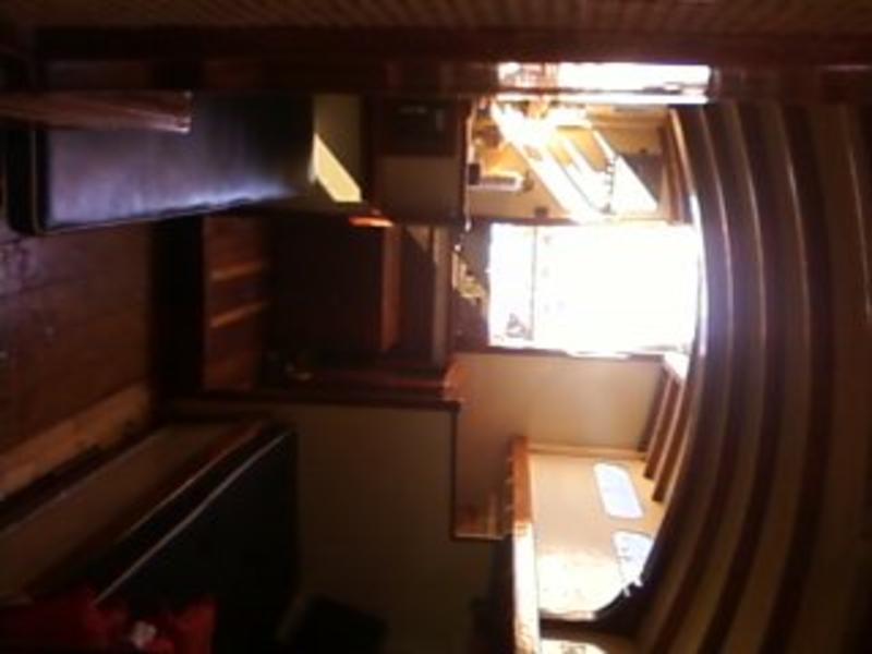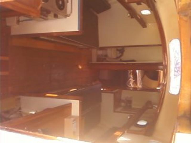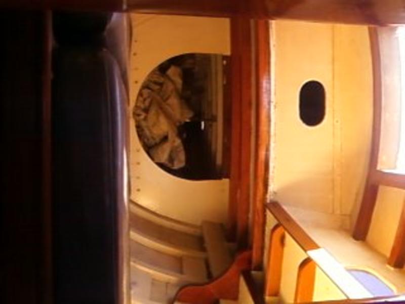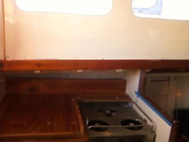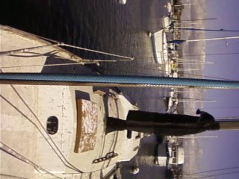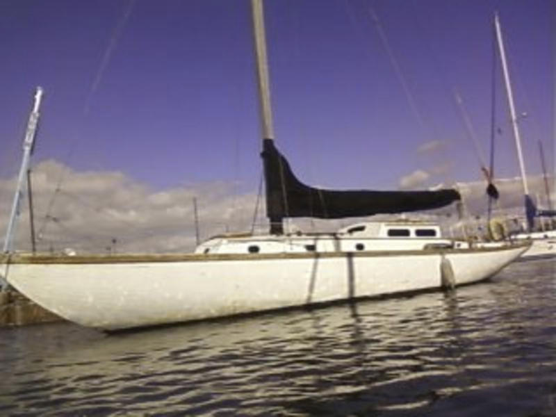 LWL: 30' Draft:6' 06" Beam:9' 06" Sail Area: 715sq ft Headroom 6' Backbone: white oak Deadwood: Douglas Fir Frames: white oak 1-3/4" by 2" Planking: Douglas fir (vertical grain) to finish 1 1/8" fastened with 2" endeavor screws Clamp: Douglas fir Decking:Phenol fisish resin plywood bonded into a solid unit canvas covered House sides: philipene mahogony with 6 dead lights and a single opening port in the head Dog house: philipene mahogony sides with 4 ports 8000lb ballast (external)