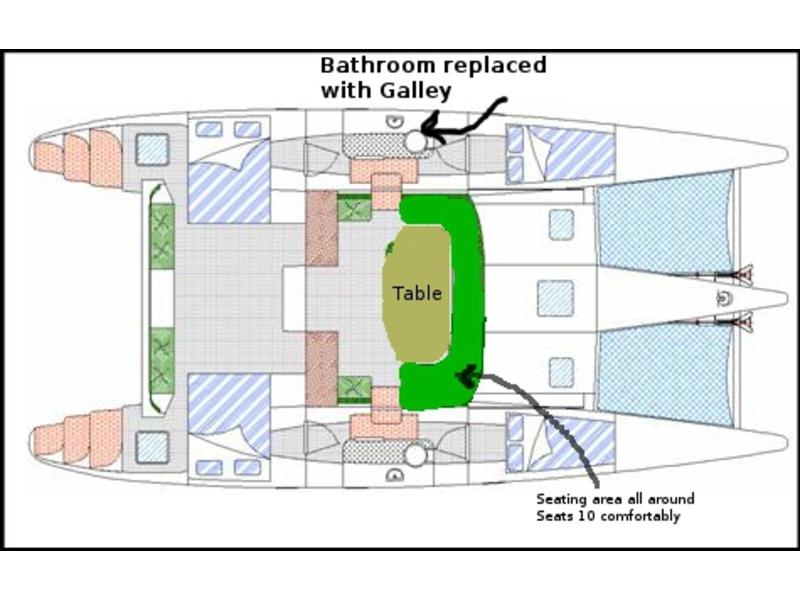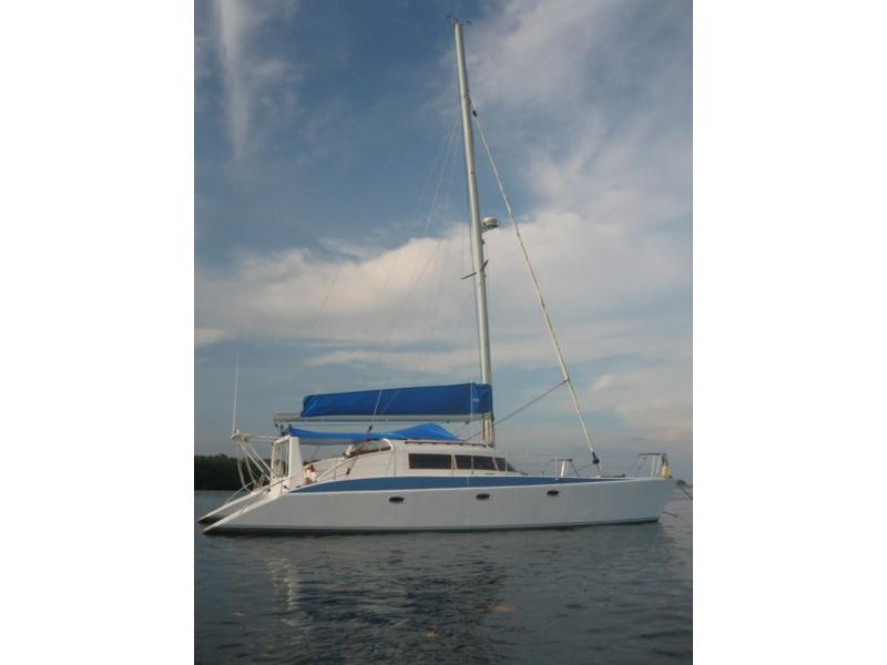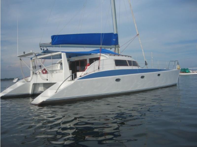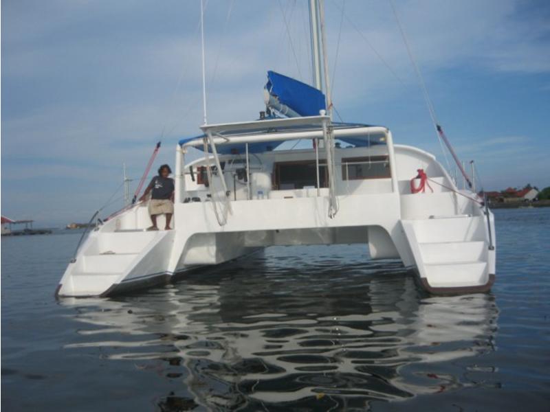 Well equipped blue-water cruiser 14 meters x 7m x 1.2m (Foam Sandwich construction) 4 Cabins – 2 single, 2 double 2 x 40hp Volvo Saildrives 6.5 Kva Kohler Generator (silent) 1.8 KW Xantrex Invertor Vetus Hydraulic Steering Westerbeke Aircon Spectra Watermaker Tecma marine head (electronic) Lewmar Windlass Harken Deck Hardware Hood Sails OzSpar mast and Rigging Raymarine - E120 Chart plotter,26 mile radar, Fisfinder, Autopilot, ST60 Wind/Speed/Depth. Uniden VHF Icom Handheld Lazilas 8man Liferaft |