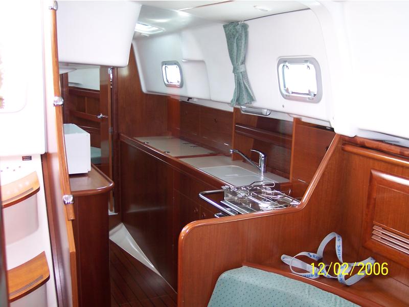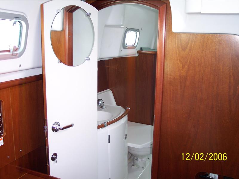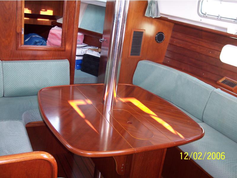 Classic Beneteau 36 center cockpit with V-berth and aft cabin. Galley has 2-burner stove and oven and dual access top load fridge w/freezer. Cabin has drop-leaf table with settee on port and starboard. Separate shower and head. Original cherry-stained mahogany wood. Engine is Yanmar 27 HO and has access from front and from aft stateroom.