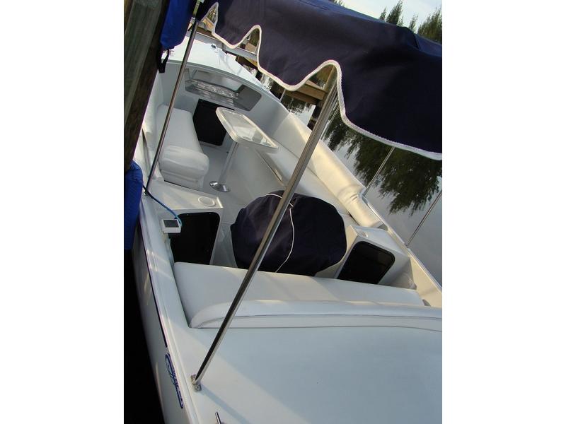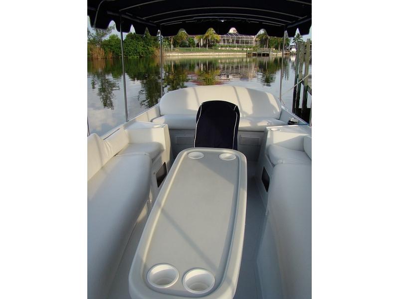 This boat will have a complete refit, allowing you to choose the color for the surrey top, cushions and boat striping.(pictures below are examples of one of my refitted boats) |