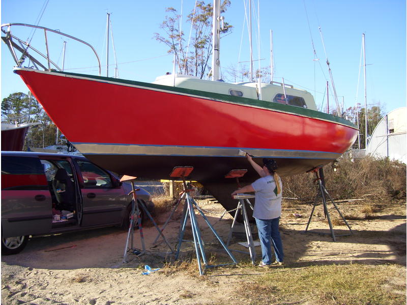 this boat is a well kept boat I personally sanded the whole boat from top to bottom and re painted the whole boat it has a/c fridge heat vhf new seat cushions and some extra rigging and looks and sails great very stable and very fast