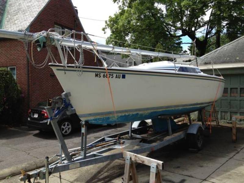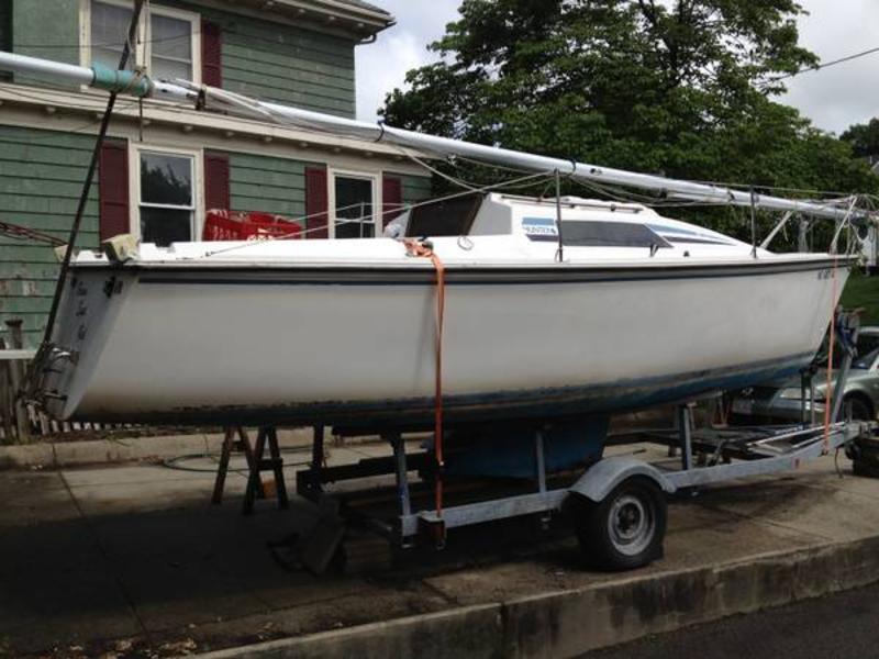1986 23' Hunter wing keel sloop. 5 HP Tohatsu 4 stroke, low hours. Galvanized steel trailer, bunks recently replaced. Local sale includes assist with initial rigging/launch. |