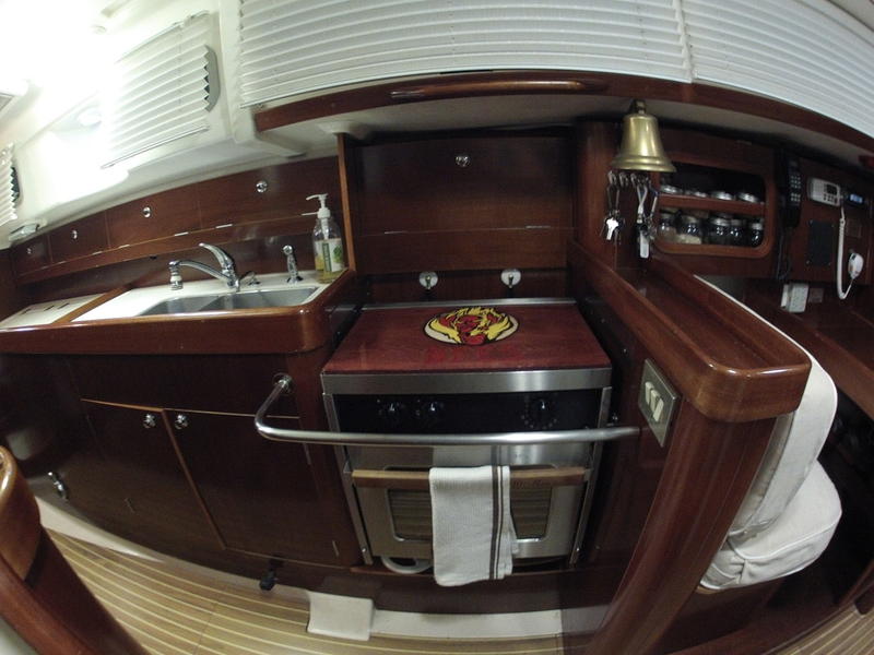 As far as her construction is concerned, there are no compromises: the structural inner moulding, glued and laminated to the hull, distributes any stresses from the rigging and keel. This technology combines reliability and strength and also provides perfectly finished locker interiors that are easy to maintain.