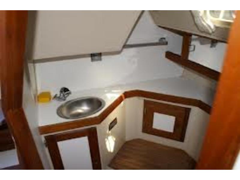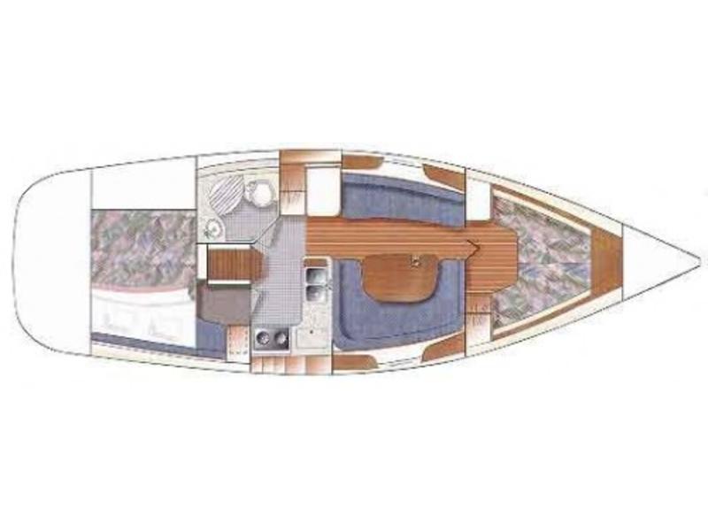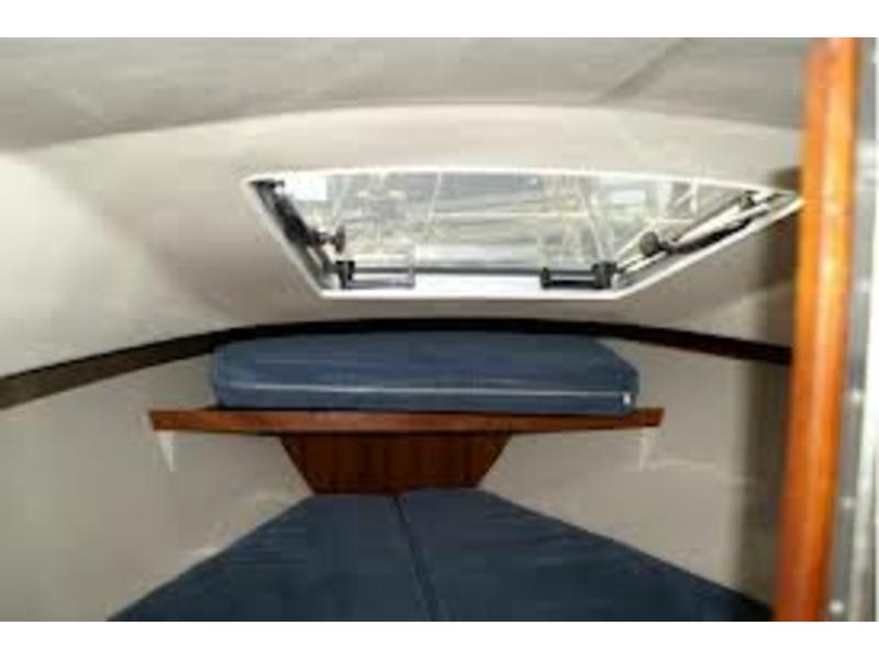 From the bow a large ,private cabin with double v-berth, hanging locker and chest of drawers, storage under, closing bifold teak door followed by salon with straight settee to port followed by sit down nav station, opposite fixed table and u-shaped settee which convert to a double berth to starboard , followed by l-shaped galley , opposite full marine head w/shower stall to port. Just aft of galley is a solid teak door to private aft cabin with large double athwartship berth. Interior propane heater. 23 inch lcd tv am/fm/cd radio, Futurno radar.