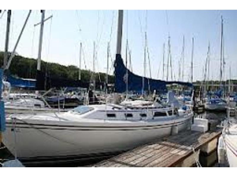 1989 Catalina 34 1989. A medium sized coastal sailor, Kestrel is one of the few 34 foot sloops Catalina has produced. She is a comfortable and desirable vessel. A feature is the generous cockpit, unusually spacious and comfortable. On day sails, in the cockpit, on deck and below, 6 to 8 people are accommodated without crowding. A dodger keeps the passengers out of the wind, and a bimini out of the sun. It is cozy below with rugs on the floor, two cabins and a dining/lounge area. The galley contains a two burner gas stove, an oven, two sinks, Microwave, an ice box (with cold plate.) Meals are taken on deck or in the dining area. The two cabins are at the opposite ends of the vessel, one fore and one aft. Each has reasonable storage space, and comfortable sleeping accommodations for two. The dining table makes up to a comfortable queen size bed. The sanitary facilities are in a separate room, and include a shower. Hot water is available. There is generous space for the storage of towels and toiletries. The Diesel is most reliable, and there is fuel capacity for over a hundred miles |