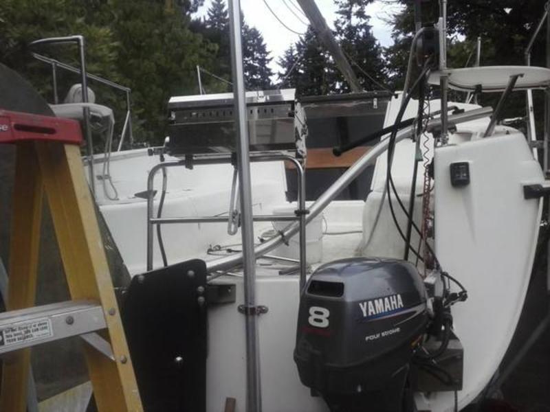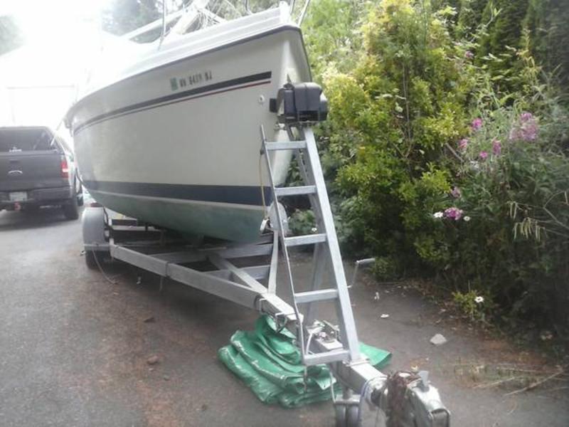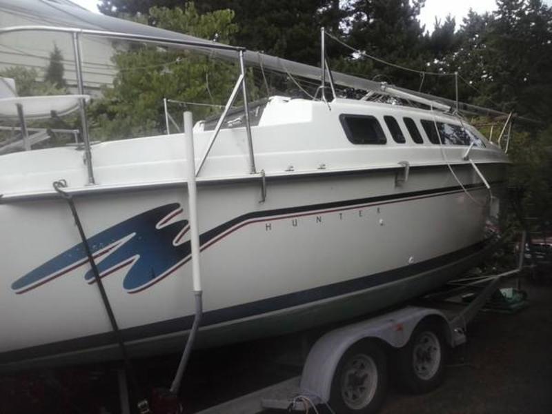 I have a very nice 1996 Hunter sail boat for sale with a lot of great additions for sale and at a great price. •one owner, trailer sailed only •1996 Hunter galvanized tandem axle trailer with surge brakes, spare tire and rack, and extension tongue, ready for road trip. •1996 Yamaha 9.9 four-stroke outboard with extra long shaft, electric start, 13 amp alternator, custom motor mount, 8 gal. Tempo fuel tank, big eared prop, 2 group 27 batteries. •The Hunter 26 is a water ballasted with a retracting centerboard and rudder capable of floating in two feet of water and easily ramp launched. On the road the trailer and boat weigh 5,500 lbs. Equipment List; •Pulpits and life lines with rear pulpit seats, boarding ladder, bimini top and cover. •Expanded voltmeter, with lighter socket •Standard Comunications depth and speed log, Eclipse VHF radio with masthead antenna and external speaker, •Plastimo Contest bulkhead compass with navigation light •Windex wind indicator with extension mount •Holders for: binoculars, winch handles, handheld radio, and magazines •3- Hela Turbo cabin fans, and CO2 detector •Custom cabin curtains with slides •Two-burner Origa alcohol stove with cutting board cover •Hunter dishes and built-in racks •5 gal and 2 � gal water tanks, 48 qt, •Fire extinguisher •Anchor with chain and rode, navigation lights •Tiller extension •Harken Flexable roller furler wth lead blocks and cleat, Jib modified for furler and sunshield added •Hunter mast raising system and removable rear mast post •Main sail and cover with sail numbers and second reef point added •6:1 Harken Hexa Ratchet mainsheet with Harken 2:1 windward sheeting traveler •Boom customized with 6:1 outhaul, with both reef lines, topping lift, 4:1 vang, and outhaul easily reached at the companionway •Halyards and furler line are lead aft to cockpit •2- #17 Barient self tailing winches with 2 -10 inch Harken winch handles and other standard Hunter features •This boat has been lightly used. |