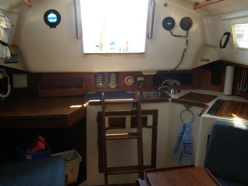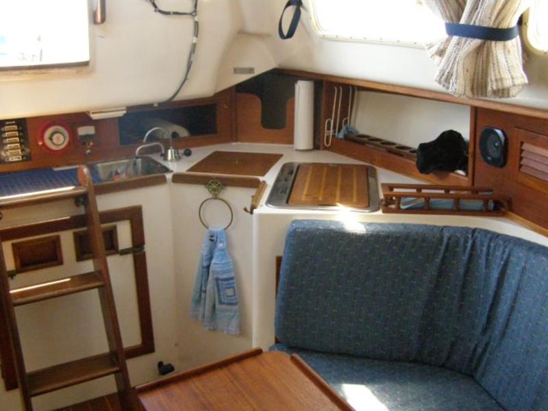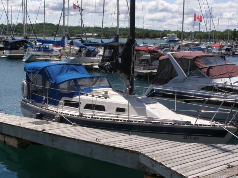 This vessel is in spectacular condition and will bring many more years of sailing enjoyment to a new owner. It has a full compliment of sails including the main, 2 jibs, a spinnaker and whisker pole. Other features include an ‘03 Honda Outboard w/onboard fuel tank and electric start, a steel cradle for storage, a stereo, a DSC VHF radio and a backup VHF radio, a Standard Horizon GPS chartplotter that is integrated with a Raymarine autohelm and the DSC VHF. The cranking battery was new in ‘09 and the house battery was new in ‘11. We have also added a dual bank electronic charger to maintain the batteries at optimum charge. There is a 6’ dingy with a 2 HP 4 Stroke Tohatsu outboard. We love the boat and we got married on her. She has a gorgeous interior with lots of woodwork and character. She is usually at dock in Wiarton and is always ready to show. Visit the website at www.quintiki.ca