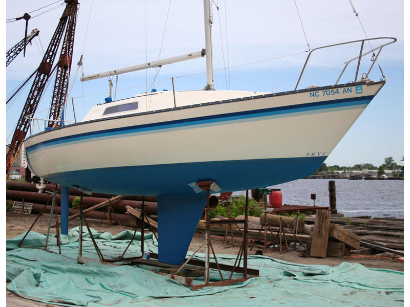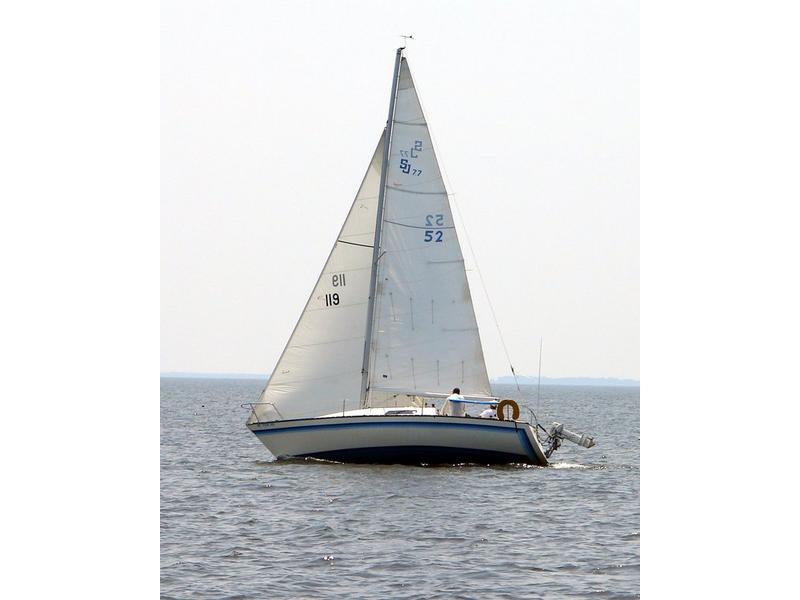 Engine: 2011 Yamaha long shaft with auto start and lift. Less than 20 hrs on motor Sails: Main- 1; jiffy reefing on main Genoa – 1-135%; 1-150%; 1- Spinnaker Galley - alcohol stove ; stainless steel galley sink w/pump Head- porta potti Interior- Cloth on the bulkhead, cushions in the V-berth and in main cabin area, also a pull down table. Ground tackle - Anchor and anchor line plus dock lines. Canvas - Vinyl sun cover that fits over the boom Extra- Bulkhead mounted Compass, knot meter and depth meter. Life jackets, horseshoe life ring, canvas motor cover, and tiller cover. VHF radio, air horn, and main sail cover. Double slotted headstays. Life lines, stainless bow and stern pulpits, boathook; mainsheet traveler; 2 speed primary winches; All halyards led aft; adjustable backstay. Wind vane. |