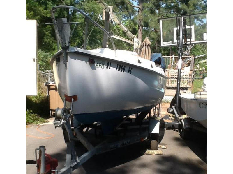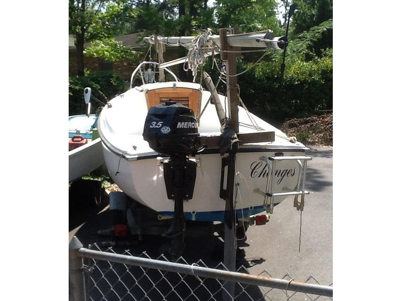 Sails and all lines new. New rigging, many extras. New bottom paint. Motor new,never had gas in it. 3.5 hp 2011 Mercury four stroke. Boat in very good condition on tilt trailer.