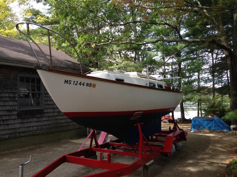 1974 Cape Dory 25, This is an original classic, overbuilt boat by the famed Cape Dory Yard. It is an easy daysailer or weekend cruiser. This revered Cape Dory has been lovingly cared for and kept to a yachtlike standard. It has been in the family for many years and sailed on Buzzards Bay. The bottom is freshly painted, the hull waxed and teak has been renewed. All sails and cushions are all stored inside a dry storage area along with mast out of the weather. This boat can be trailered home on its custom built trailer saving thousands on boatyard storage bills. Don't miss this opportunity to own one of the best designed cruisers in this size range. Serious inquries welcome.