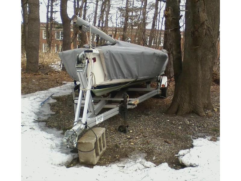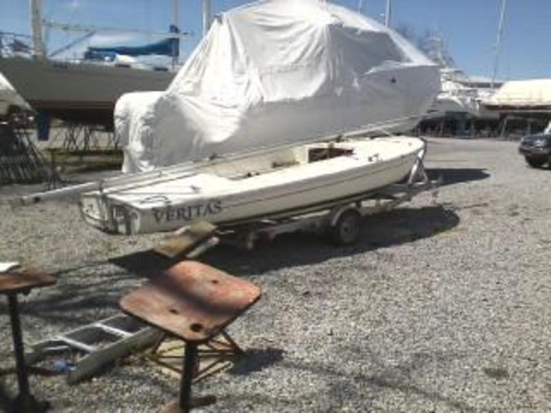 Basic Racing , 3 MAD sails, lightly used boat. Two covers. One Canvas; and vinyl. Safety equipment.Swim ladder. Trailex Aluminum Trailer.