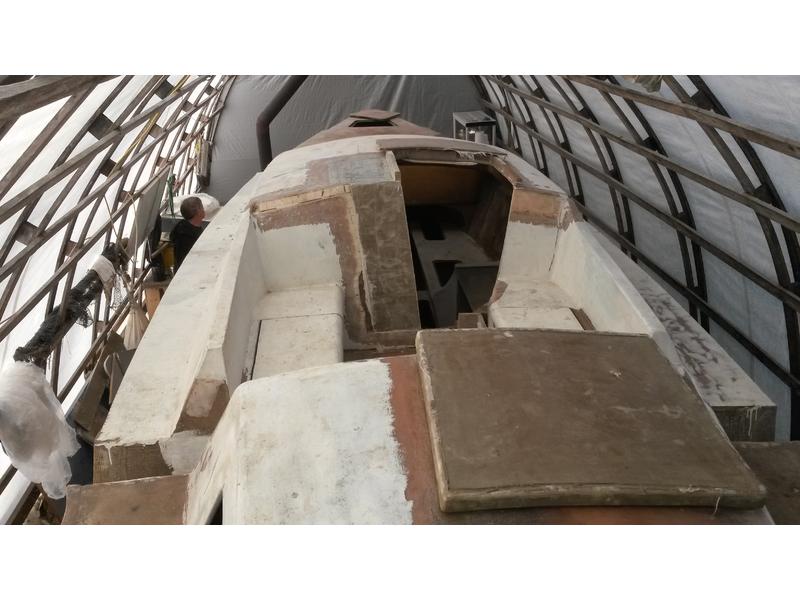 under construction yet to be launched project.located near Vancouver B.C. Canada . this boat costructed corcell fiberglass sandwich.