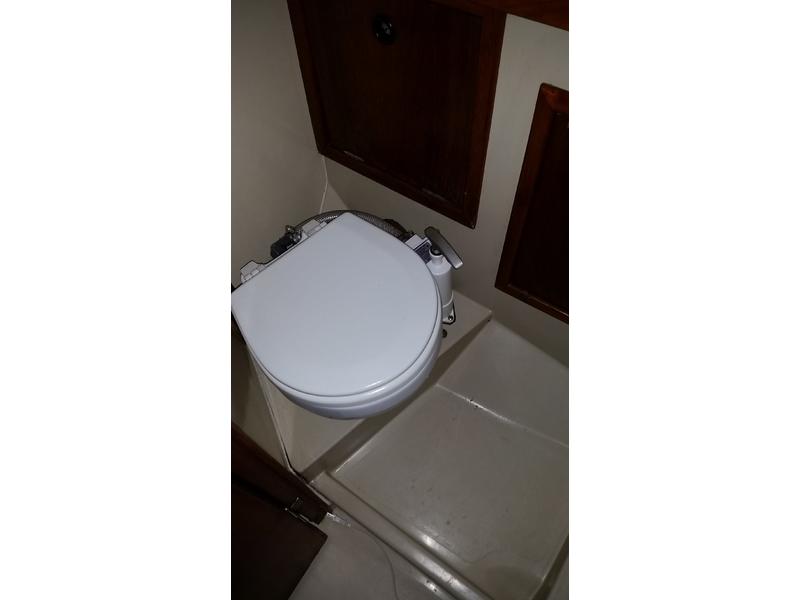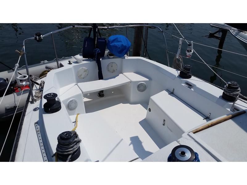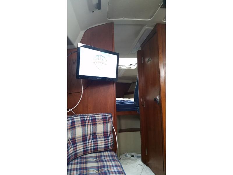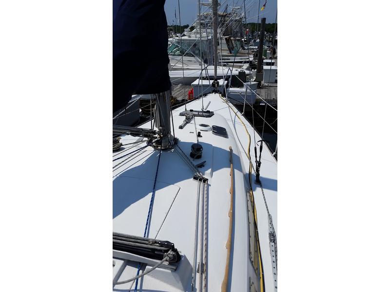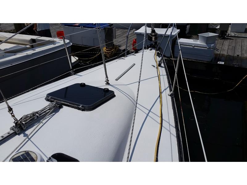 Bulkhead Kero heater (never used), VHF at nav station and RAM mic in cockpit, depth with readouts in nav and cockpit, Autopilot on the tiller, new bluetooth stereo, flat screen TV in cabin. Brand new batteries this year, engine tuned up every season with new plugs, belts, filters. All deck hardware re bedded, New Main, New 150, good #2, #3, storm jib, feathering prop, New Rigid boom vang. |
