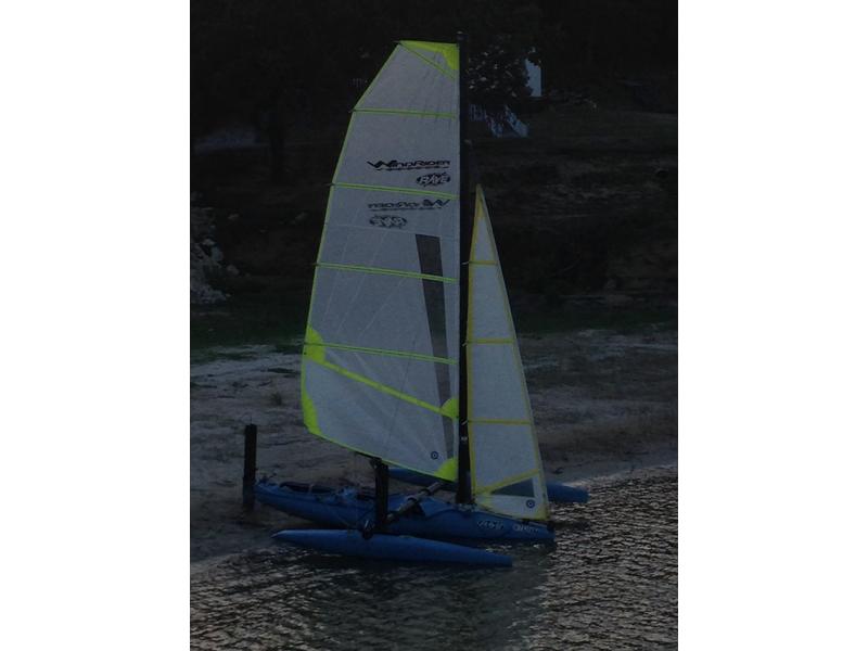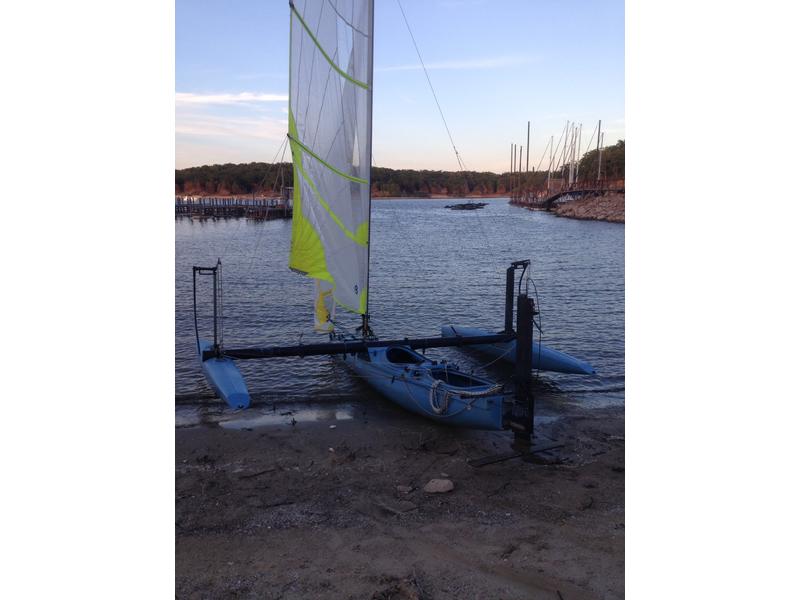 Rave wind rider hydrofoil trimaran sailboat in excellent condition with trailer in North Texas only asking $4000 I had a total knee replacement and have to slow down a bit this boat can exceed 40 miles an hour