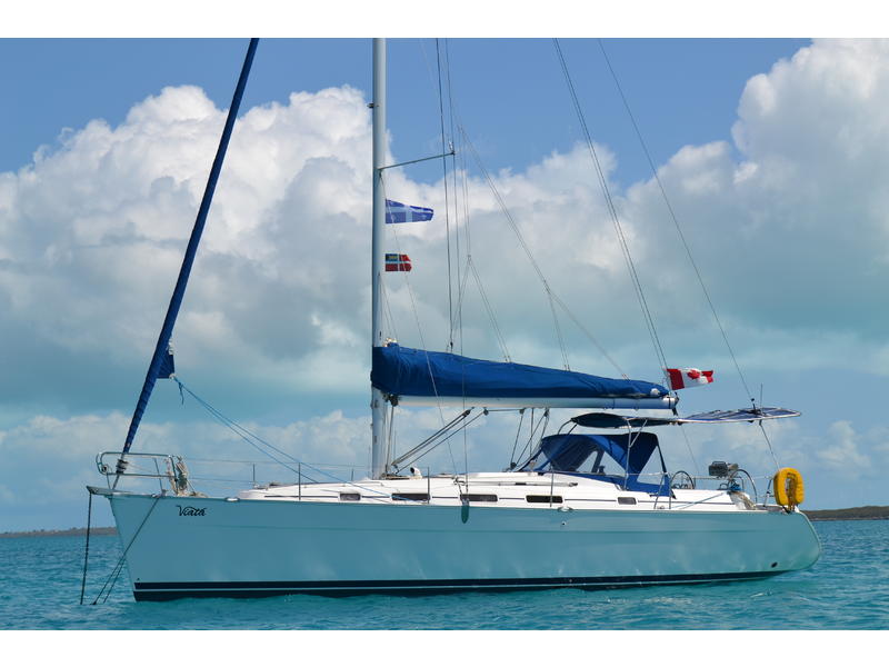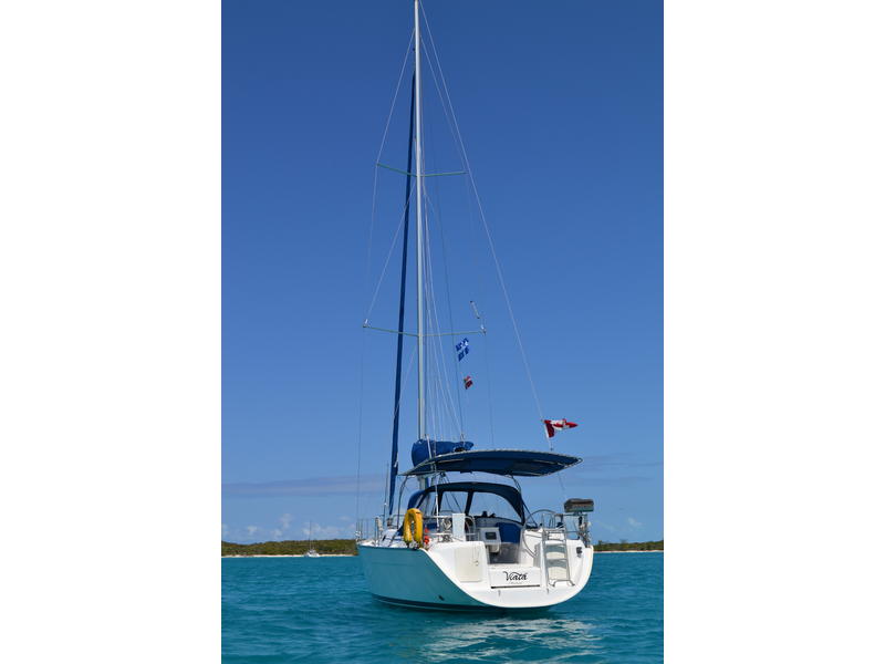 -3 cabins with 2 heads. -Fridge with freezer. -2 burners stove plus oven(2 X 10 pounds tanks). -Large cockpit for 8 with cushions. -New 2015 2 agm house batteries total 396 amps. -New 2015 400 watts solar panels with mppt controller(Energy independant). - New sails 2015 - New dodger and bimini 2015 - new 1500 watts windlass 2016 - New raymarine chartplotter. - 10ft Carib rib with 9,9 mercury 4 stroke - New Rocna anchor 2015 on 150' chains plus rope. - New Delta anchor 2015 on 25' chains plus rope plus 3rd Britany anchor. - New wifi booster plus router 2015 - Rigging inspected and parts replaced 2015 - toilets pump replace 2016 with new seats - 6 passenger plastimo offshore liferaft - New 2016 bottom paint Seahawk plus new painted stripe and pin stripe. - New 2015 complete led lighting in interior - New 2015 am/fm satellite and cd radio. - New 2015 cockpit speakers. - New Quick windlass - Full range cookware, pot, pan etc - Set of tools. |
