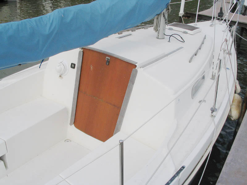 This is a great starter boat for a sailor who has spent a few years learning the basics of sailing. It is a forgiving and easy to sail boat yet it is very competitive with boats in it’s size category including some up to 30 ft. It has an advantageous PHRF rating (223 JAM). The boat has a full batten main and a 150 % genoa on a Harken furler. The sails are in excellent condition. The cabin has four berths. The cockpit is larger than the standard P-26 and the cabin is suitable for occasional overnights. The motor is a Johnson 8 HP outboard Sail drive with a long shaft. It has a built-in alternator which is good for charging the battery. Instruments include a Danforth compass and a depth sounder plus a VHF radio. All reasonable offers considered.