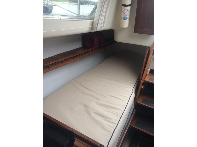 Features: Companionway A/C Dual Batteries New (2015) ProMariner battery charger Shore power with 50 ft cord All lighting LED (including navigation lights) Completely refit Raymarine speed and depth (new thru hull transducer) VHF with mast top antenna New bottom paint (2016) 6hp Johnson New fuel line New 6 gallon fuel tank 3 gallon reserve 3 jibs ((ok shape) 2 main sails (ok shape) Sleeps 4 Portable toilet