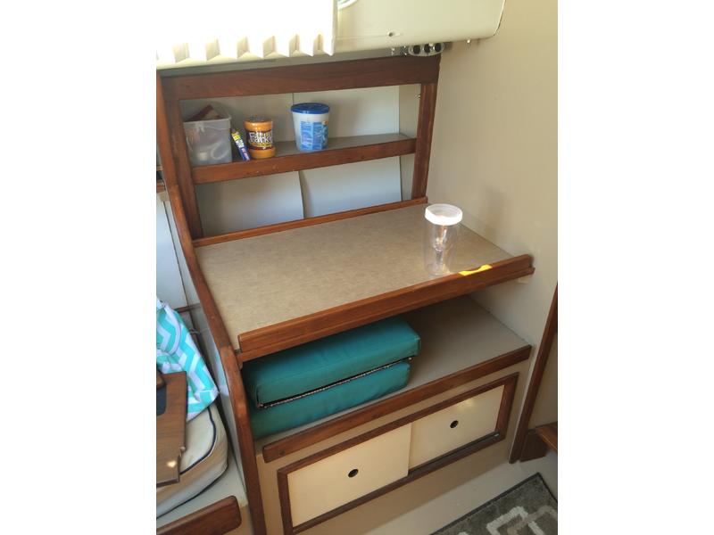 Features: Companionway A/C Dual Batteries New (2015) ProMariner battery charger Shore power with 50 ft cord All lighting LED (including navigation lights) Completely refit Raymarine speed and depth (new thru hull transducer) VHF with mast top antenna New bottom paint (2016) 6hp Johnson New fuel line New 6 gallon fuel tank 3 gallon reserve 3 jibs 2 main sails Sleeps 4 Portable toilet bimini