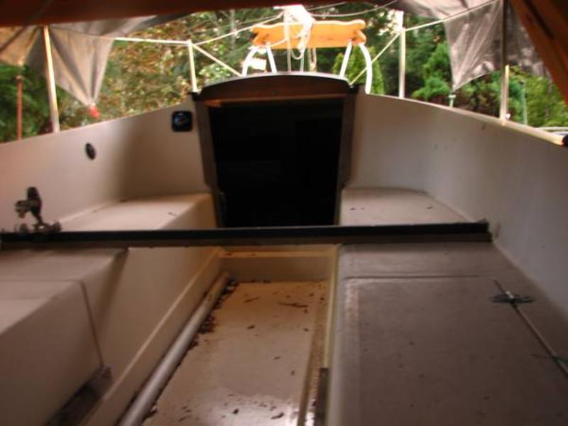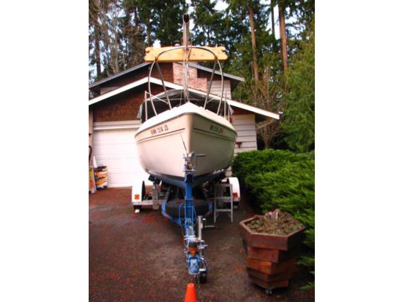 Please call owner Heiko at 360-871-6529. Boat Location: Port Orchard, Kitsap County, Washington. Boat is in good condition, has 2 sails, main 100 jib, all lines, fenders, whisker pole, boat hook, anchor 20' chain. New Porta Potty, 2 long paddles, 5 hp Elgin outboard, Built in manual bilge pump. Boat needs younger more energetic owner. Boat comes with trailer in good working condition. Interior is small and needs a little work. |