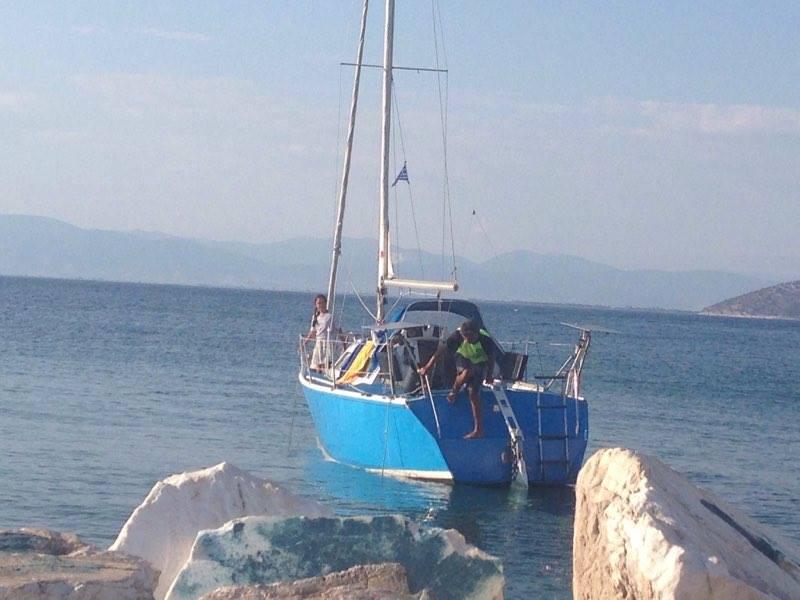 The boat is registered in Germany and is located in Greece in Thasos island.