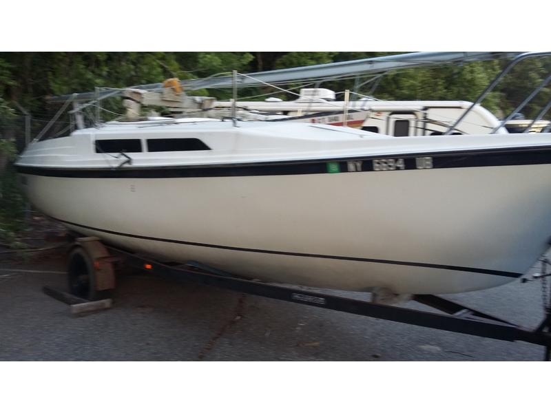 Depth Finder, GPS, Compass, Cushions, 9.9 H.P 4 stroke outboard. 3 Sails excellent condition. Water Ballast system makes boat easy to trailer.