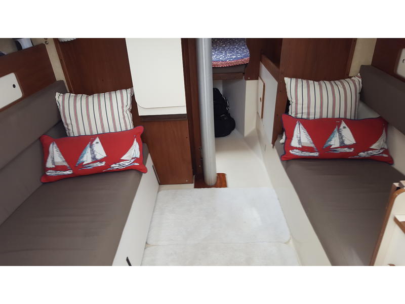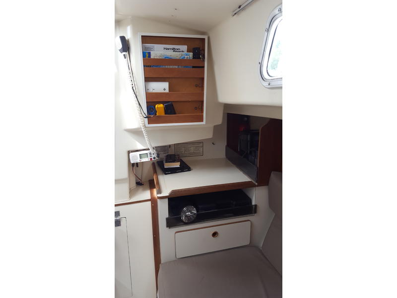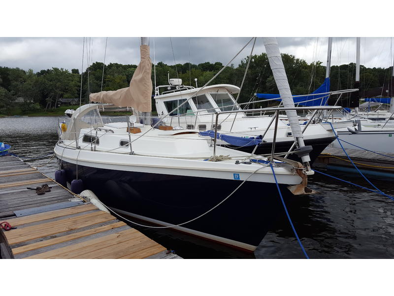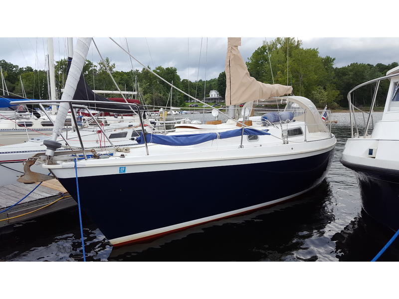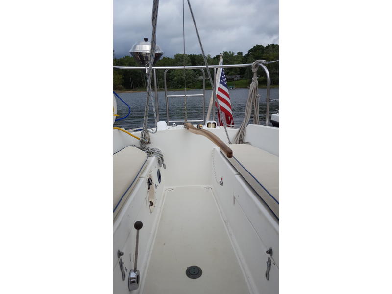 Main sail in good condition. New sail cover (2014). Hood roller furling w/135% Genoa and spare storm jib. Large cockpit with dodger, 2 Lewmar 30 self-tailing winches with locking winch handle. Boat also comes with a large cockpit sun shade for protection at the dock. Flag blue Awlgrip painted hull (done in 2010), tiller steering with tiller cover, 2 teak dorade ventilation boxes w/Stainless Steel cowl vents. Engine is the Original Atomic 4. Full tune-up (points, plugs, condenser, distributor cap, ignition wires and coil in 2014), new water pump impeller, 2 battery system, Racor fuel filter, oil pressure, ammeter, temperature gauges. New cutlass bearing, Stainless Steel prop shaft, PSS drip-less shaft seal and upper and lower rudder bearings (2014). Velcro screens for main and forward hatches, cockpit cushions, updated foam cushions in main salon and V-berth, drop down salon table w/leaf, LED lighting throughout, shore power duplex outlets. Manual head with 13 gallon holding tank with electronic tank level sensor. Plow anchor w/25' chain and 150' of rode, spare Danforth anchor w/ 150' of rode. Windex wind vain, compass, digital knot meter and depth gauge, manual and auto bilge pump, spot light. Double lifelines w/quick release clips for easy boarding (new 2010). Life ring, VHF radio (new 2011), stern mounted swim ladder, shore power cord. Includes 5 Hostar heavy duty jack stands for winter storage. Transport can be arranged with local hauler with mast crane on his rig. $7,800 obo |