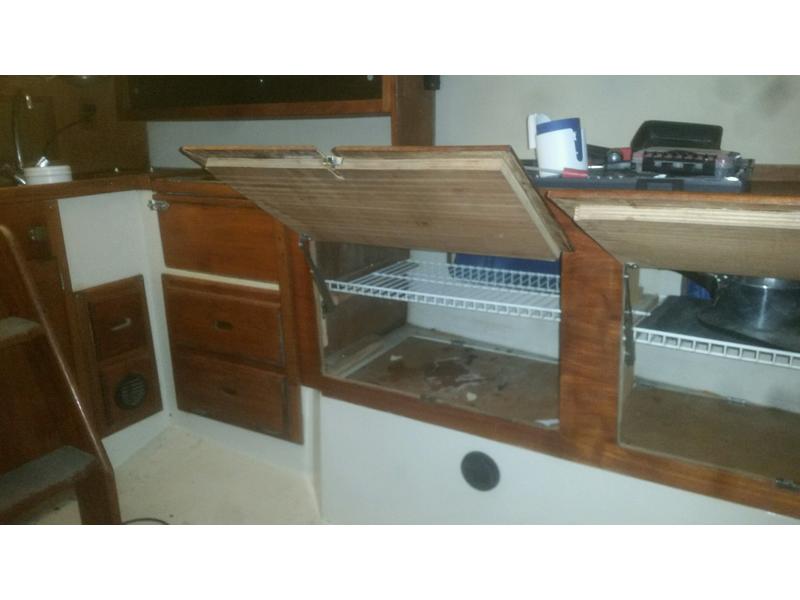 Deck and Hull: Fenders and dock lines Swim ladder Extra hand holds in cabin and on fore deck Plow anchor with rope and chain rode fire extinguishers Flare kit New Epoxy and Barrier coated bottom 2015 bottom paint Owner's manual Cockpit cushions New cabin cushions 2014 Galley: Stainless steel sink pressure water Ice box with cold plate Two burner alcohol stove Hot water heater