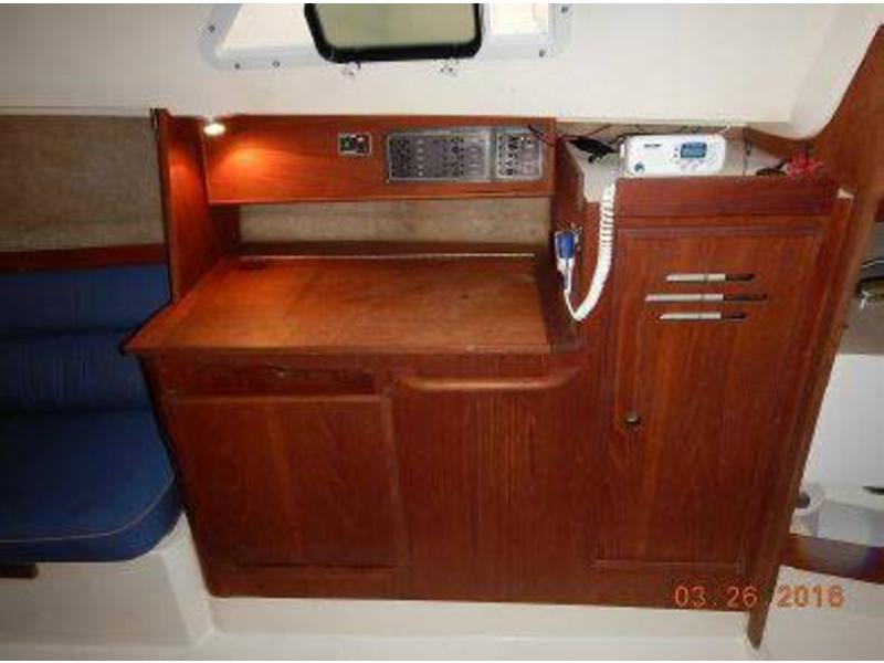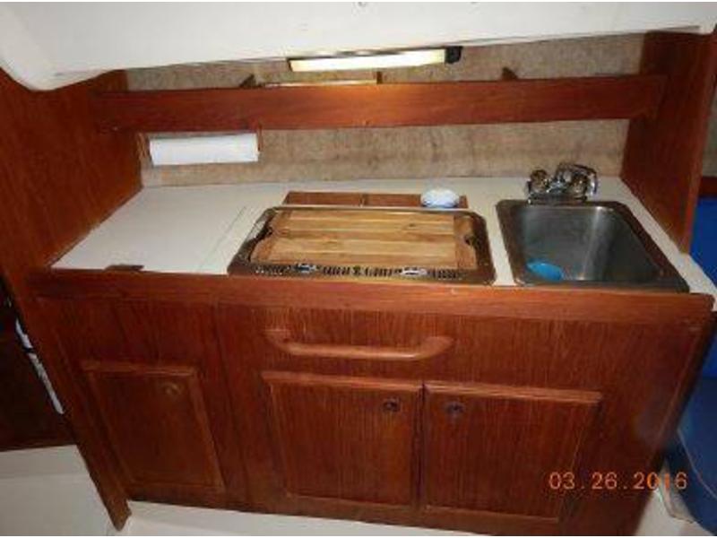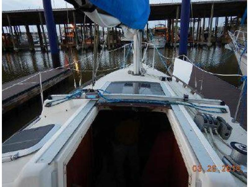 SlicLady II was acquired from the original boat owner that took excellent care of this boat. With a wing keel draft of 3'4", she is well suited to sailing or racing in the shallow waters in and around Galveston Bay. Her Universal 12 with internal water cooling purrs when engaged but, she sails faster in a stiff breeze. Boat is well equipped removable bimini, main and roller furling jib with asymmetric sail with sock, pressure water and water heater, shower and sump pump,new high rise commode, battery charger and 110 volt converter charging two new 800amp hour batteries. She has two anchors. For 27', she accommodates crew and passengers like a much larger boat, easily sleeping two couples in the v-berth behind a privacy screen and in the aft berth behind closing door. She has had standing rigging tuned, a new gooseneck put on the mast, and some new running lines added. |