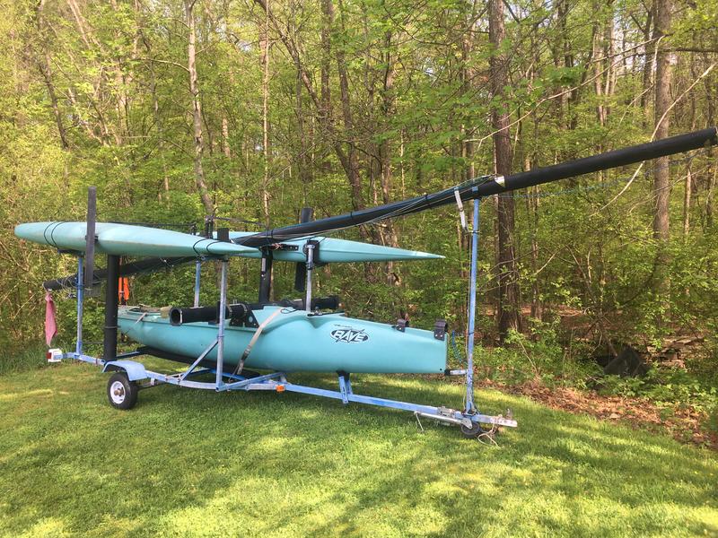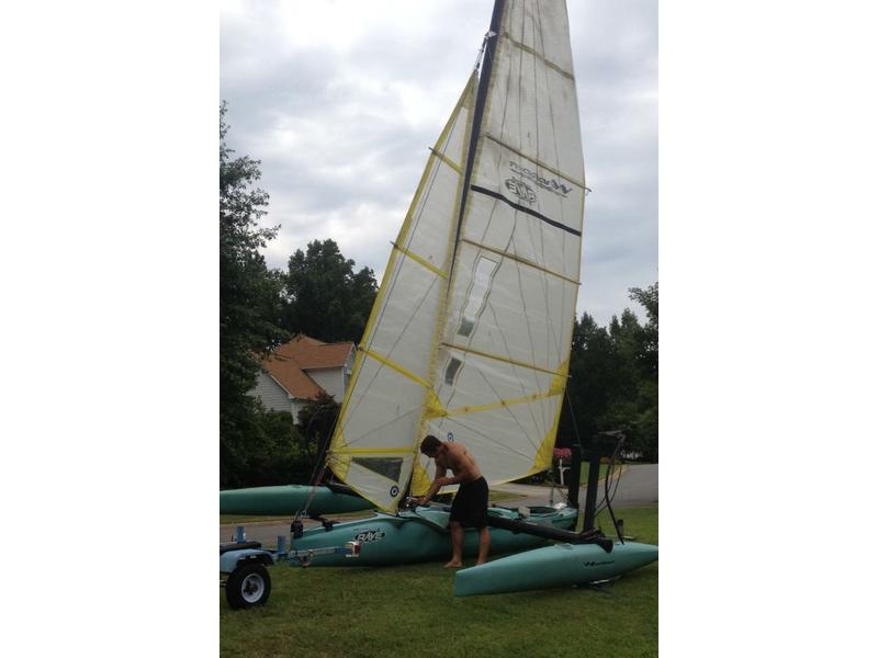 17' Rave Trimaran. Both sails are in good condition, no rips or tears. All parts are working, and the foils are in good shape as well. Looking to sell because I don't have as much time, or really the space to hold on to it.