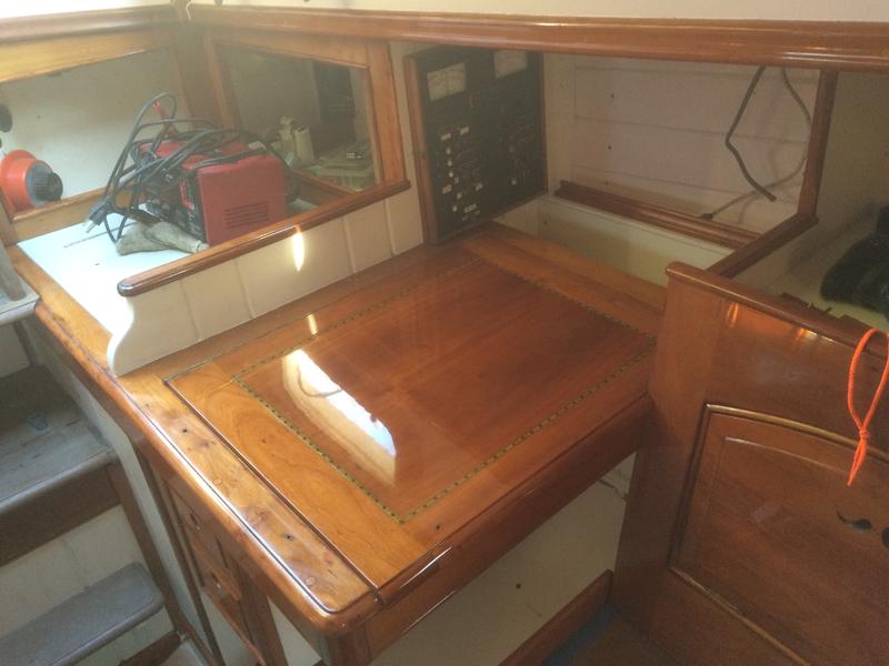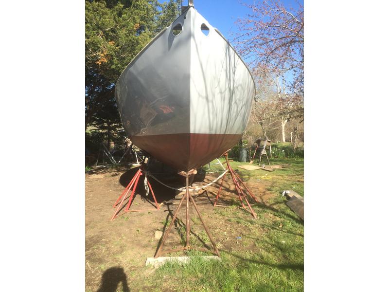 Elyse is a comfortable shallow draft boat ready to sail and motor. The hull, deck and cabin house are all steel. The interior is varnished cherry. She has a newly plated keel and counter. The rig is aluminum with a new wood boom.