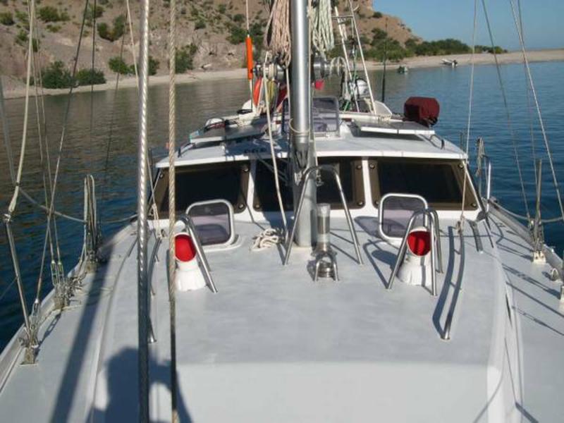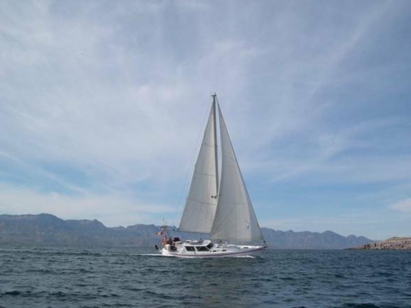 One Raymarine ST 40 Dept Sounder. One Icom IC- M422 VHF Transiver. One Icom IC-718 SSB, HF & Ham Transceiver, One Furuno Model 1832, 36 mile Radar. One Furuno Model GP-32 WAAS GPS One Xantrex 20 Inverter. All the above mentioned instruments were replaced and new in 2009. There is also a Spectra 14 GPH Cape Horn Water Maker new in October 2011. The refrigeration system is two Frigoboat Compressors, one to operate the Freezer the other the Refrigerator, both new in November 2011 and are operated through a Keel Cooling system. The running rigging was replaced in 2012 and the standing rigging was replaced in 2013. The main engine is a 65 hp Isuzu C-240 Diesel, driving a fixed three bladed Campbell propeller, with a total of 4200 hours. The auxiliary engine is a 15 hp Isuzu 2 KC1 Diesel, operating the Diving Compressor and a 150 Amp Alternator with only 1800 hours. The dinghy is a 8 ' Achilles with a 9.9 hp Honda both new in 2007 and a new cruising Bimini was installed in March 2011 as well. While in dry storage at Opequimar Marine, Puerto Vallarta over the summer of 2010, the entire vessel was painted with All-Grib two part epoxy paint (Snow White). There's a large spare parts list as well, which includes Bilge pumps, Water pumps, Head pumps, Offshore repair kit for the Water Maker and Monitor Wind Vane, all needed filters etc, too numerous to mention. This vessel is positively beautiful and has been lovingly maintained throughout her life with no cost spared at any time. All oils have been changed every 100 hours or every 6 months, which ever comes first. This beautiful vessel is a 100% turn key operation and is listed for only $160 000 US. She is dry stored over the summer in Marina Guaymas, but will return to Mazatlan and Puerto Vallarta in October 2017. |