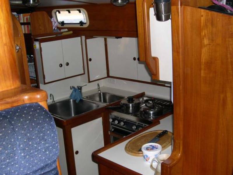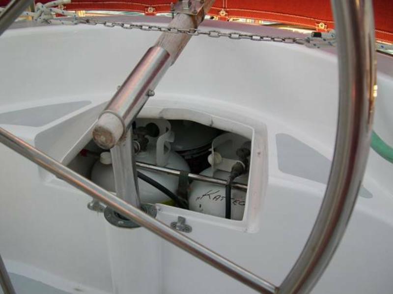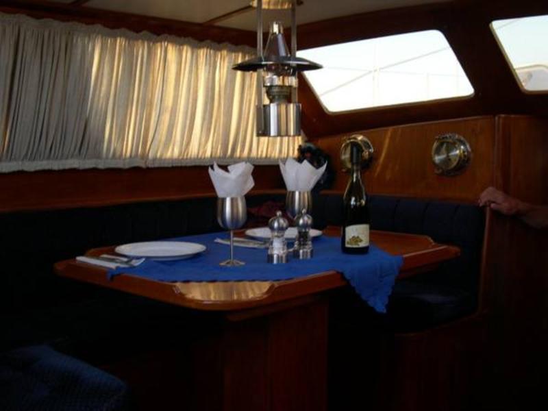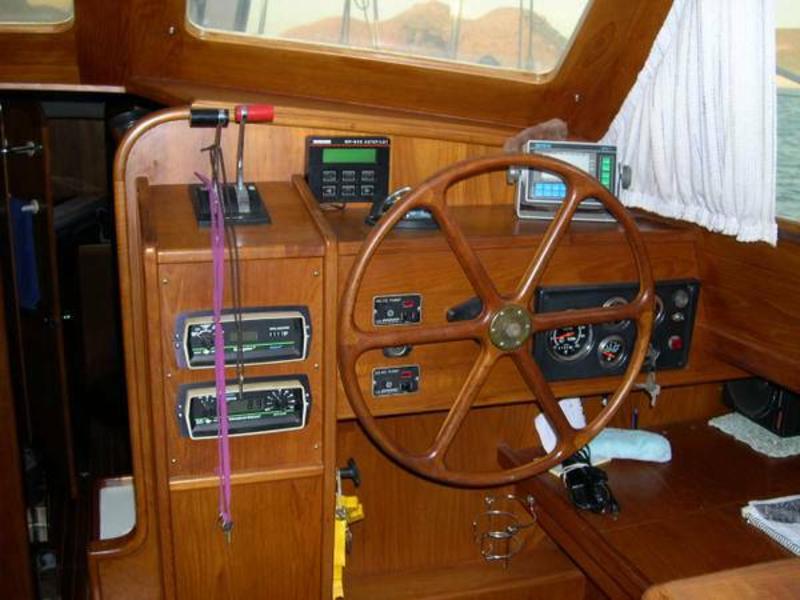S/V "KATTEGAT". The Sailing Vessel "Kattegat" is a Cresent 40 sloop with a cutter rig. The hull and deck was built by DeKleer Bros shipyard and launched April 20, 1992 in Richmond, British Columbia, Canada and weighed in at 17 tons (34000 pounds) with 11000 lbs of lead internally in the keel. She's 40' overall and 13' wide with a draft of 6' 1". She has all aluminum spars with the mast standing 57' on deck and carries 1000 square feet of sails evenly divided between the Mainsail and the Genoa. Both sails are of the Spectra material (North Sails) and new in October 2012, there is also a Storm Jib in the sail inventory. The mast has two Andersen 45 stainless steel self-tailing winches and a whisker pole attached on a track in front of the mast for easy use. She is also equipped with a Sea Lion anchor windlass including one 50 lbs solid stainless steel modified custom made Bruce anchor with 300' of 3/8" stainless steel chain, attached to a 7/8" rode. There's one additional 45 lb Plow anchor and a 10 lb stainless steel Bruce anchor with chain, used as a stern anchor. The cockpit has three 45 and two 56 Andersen's stainless steel self-tailing winches as well as hydraulic steering with an emergency tiller, which also may be used as direct steering when using the Monitor Wind Vane, also new in 2010. There is a total of 4 Solar Panels, 2 on top of the pilothouse and two on top of the radar arc. The interior is all solid Teak with no veneer anywhere. She has an inside steering station with separate hydraulic systems, (all new in October 2011) and there is pressurized hot and cold water throughout the interior, including a shower and a sit tub in the head as well as a shower in the cockpit. The galley is equipped with Hot & Cold pressurized water and two large sinks. One Microwave Oven. One Force 10, 3-burner stove with oven and broiler (new in 2010). One 5 cubic feet Deep Freezer and a 5 cubic ft Refrigerator. The instruments consist of One Raymarine ST 6002 Smart Pilot, Autopilot. |