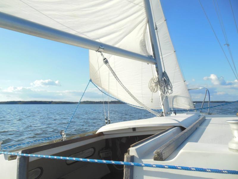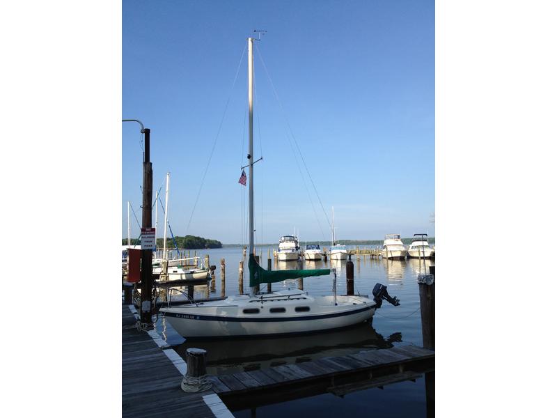 Original owner, has main, jib, VHF radio, electric start Yamaha 9.9 4-stroke outboard serviced/winterized every year by shop, 2 ft keel with additional 2ft centerboard, mainsail cover, anchor, integrated cooler, sink, dual cabin, front v-berth, 2 singles in main cabin. Detachable swim ladder. Sails great! Located on ground in Aberdeen Proving Ground Edgewood area. Selling because I have purchased a larger boat.