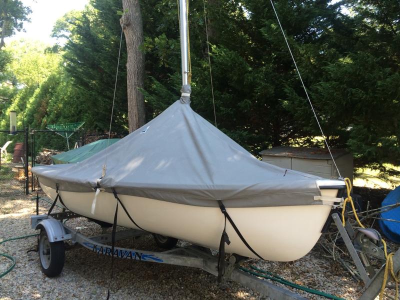 everything needed to sail and more all rigging, mast, boom, main and jib, rudder/tiller, spinnaker with pole, and a cover |