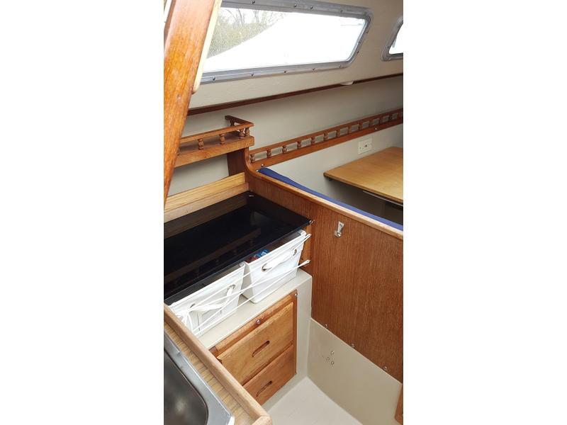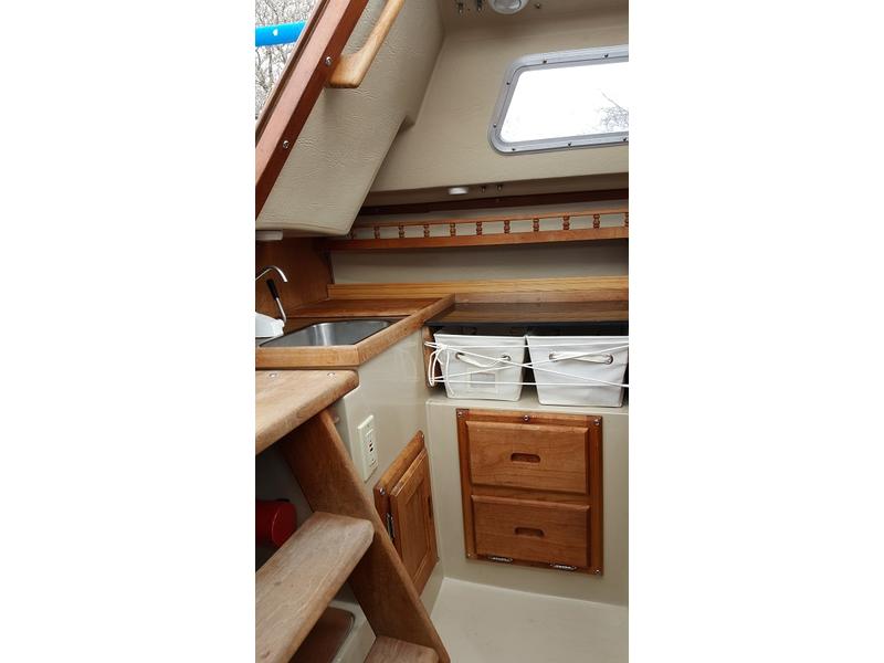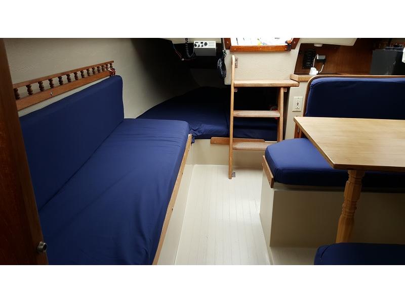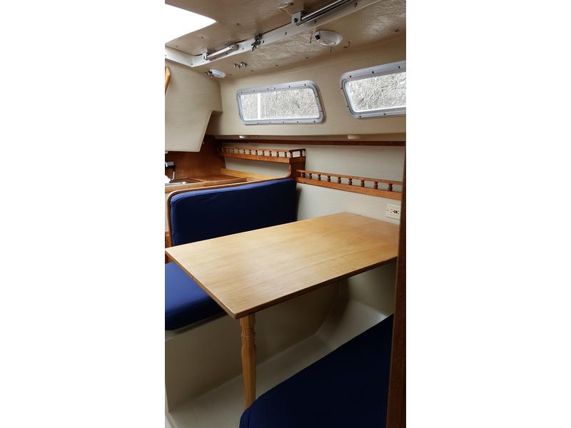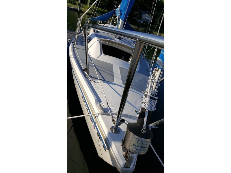 • Engine: Yamaha T9.9 new in 2016 professionally installed. New 6-Gal fuel tank and connections. • (2) Batteries premium deep cycle MAXX24DC. 800 marine cranking 80Amp/Hors new in 2017 professionally installed. • Battery charger/converter: Pro charge 3 Amp stage automatic battery charger checked 2017. • Interior LED lights, LED steaming and anchor lights new in 2016. • Voltmeter new in 2017. • Autopilot Raymarine ST1000 Pro new in 2016 professionally installed. • GPS/speed/depth/compass: Raymarine Dragonfly 4Pro sonar with transom mount featuring CHIRP DownVision™ technology w/ transducer transom mounted new and professionally installed in 2017. The boat also future the original depth finder Datamarine and Saturn aquameter compass w/ night light both in working condition. • VHF Ray Jeff 5000M w/ antenna. • Main and Jib are in excellent conditions and have been serviced in 2017. • Most of running rigging has been replaced in 2017. • Wooden tiller had been professionally refinished and varnished in 2016 and has a new cover. • Deadlights have been resealed in 2017. • Sink fresh water manual Whale pump new in 2016. • The boat comes with (2) anchors: (1) Danforth standard anchor with 90ft of anchor rode; (1) Galvanized Delta Style Anchor (14 lb) with 25 lf of grade 43 High Test Anchor Chain - 1⁄4" (2600 lb Working Load Limit) and 100 ft of Pro-Set-3 Nylon Anchor Line, 3⁄8". • Portable toilet, dock lines, fenders, fire extinguishers, signal horn and distress signals (exp. 2018). |
