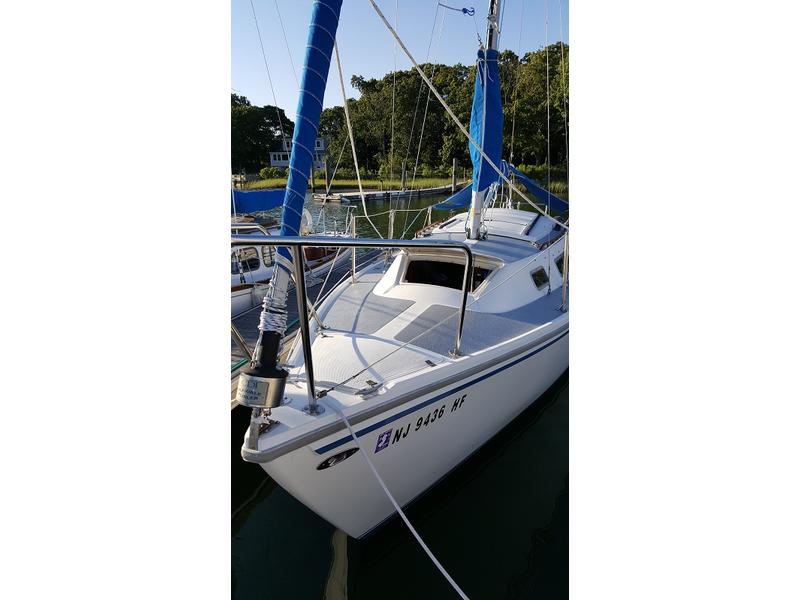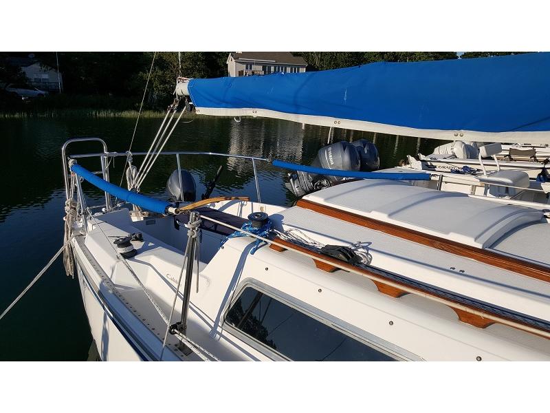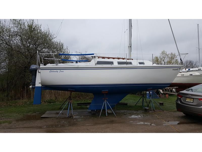 Price reduced! Catalina 25 is truly an American classic and one of the most popular mid-sized sloops on the water today. It’s a spacious, user-friendly family cruiser that could very well also be a weekend racer. This particular Cat 25 has the tall rig configuration. The Catalina 25 has a shallow but comfortable cockpit. Steering is controlled by the tiller and stern-mounted deep rudder. The companionway is wide which makes stepping below very easy. Below decks, you’ll find that the interior is very spacious and user-friendly. The layout includes a V-berth forward followed by an enclosed head with port-a-potty. The saloon has one settee on starboard and the dinette to port, the galley is aft to port with a comfortable quarter berths aft to starboard, tucked beneath the cockpit; total sleeping accommodations for up to five. Power is supplied by a Yamaha T9.9 outboard motor professionally installed in 2016. The Catalina 25 didn’t become one of the most popular boats ever built without good reason. It offers good sailing, comfortable accommodations, one-design fleets and active owner’s groups. Calamity Jane has been loved and well cared for and it is in sail away condition. For the current owner it’s time to move up! |